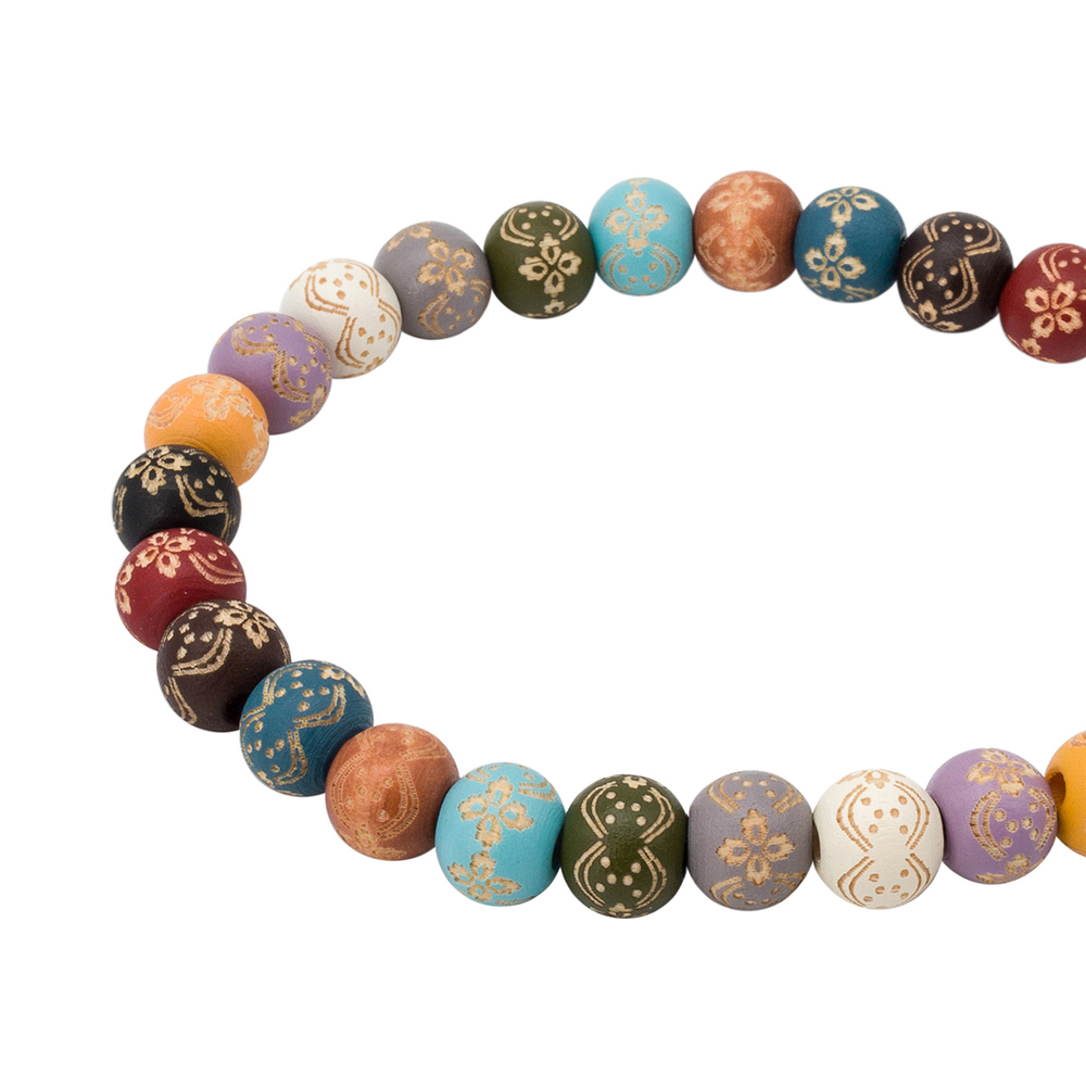 Деревянные бусины классической круглой формы с цветочным орнаментом удачно впишутся в такие стили, как бохо, кантри, этника и др. Бусины изготовлены из натурального дерева – материала, который отличается экологичностью и приятной текстурой. Такие бусины идеально подходят для творчества: из них легко сделать детскую бижутерию, развивающие игрушки или другие полезные и красивые аксессуары.
