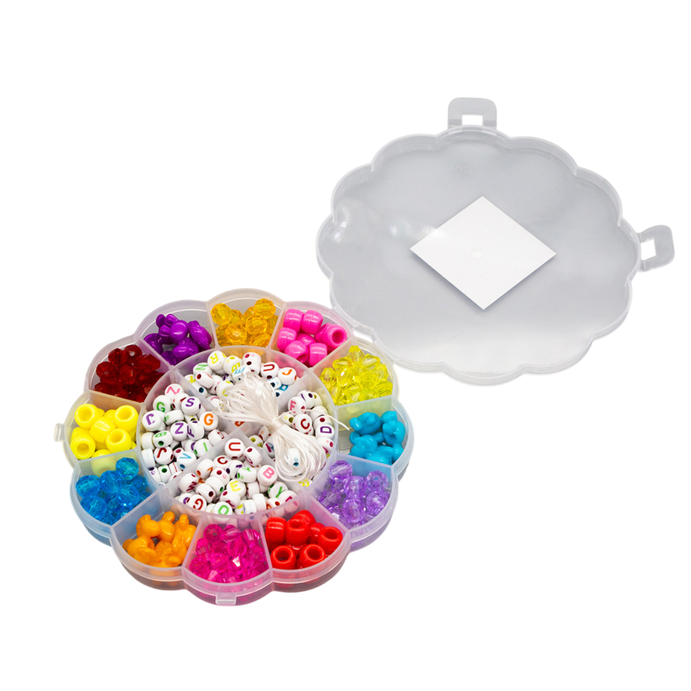 В комплект входит эластичный силиконовый шнур, который обладает достаточной прочностью, чтобы выдержать вес бусин, и при этом остается практически невидимым в готовом изделии. Набор поставляется в прочном фигурном контейнере из прозрачного пластика с удобной крышкой и защелкой. Этот контейнер можно многократно использовать для хранения материалов для рукоделия и других мелочей.
