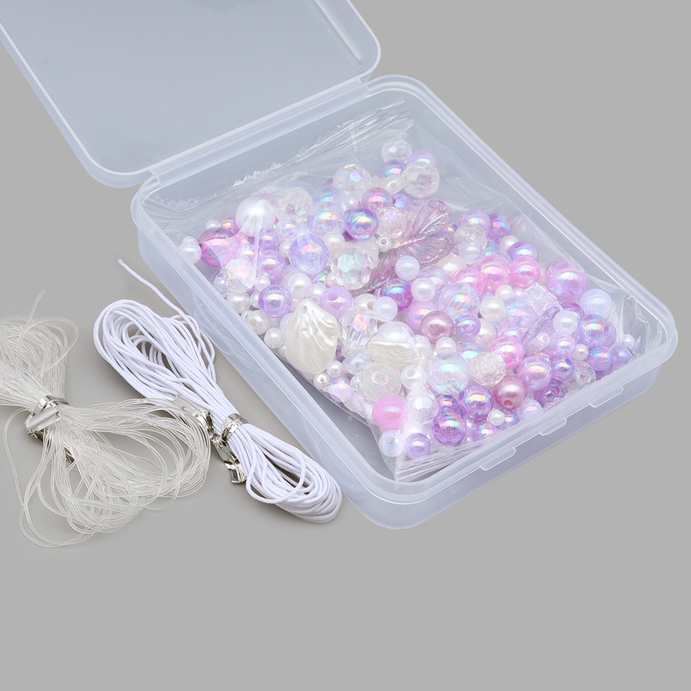 При плетении аксессуаров из бисера пластиковые бусинки можно применять как разделители и декоративный элемент. Бусины для детского творчества придутся по душе юным модницам в изготовлении, чокеров, фенечек, брелков и сережек. В комплекте прилагается нить-резинка – она эластична, выдерживает вес бусин и незаметна на украшении.