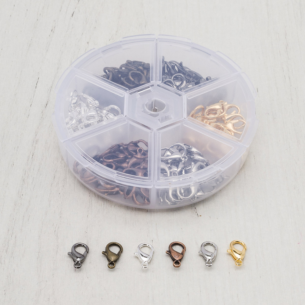 В наборе: замки-карабины 7х12 мм, 6 цветов по 20 штук.