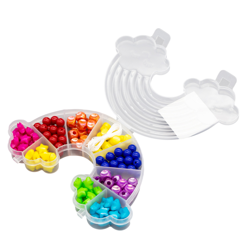 В комплект входит эластичный силиконовый шнур, который обладает достаточной прочностью, чтобы выдержать вес бусин, и при этом остается практически невидимым в готовом изделии. Набор поставляется в прочном фигурном контейнере из прозрачного пластика с удобной крышкой и защелкой. Этот контейнер можно многократно использовать для хранения материалов для рукоделия и других мелочей.