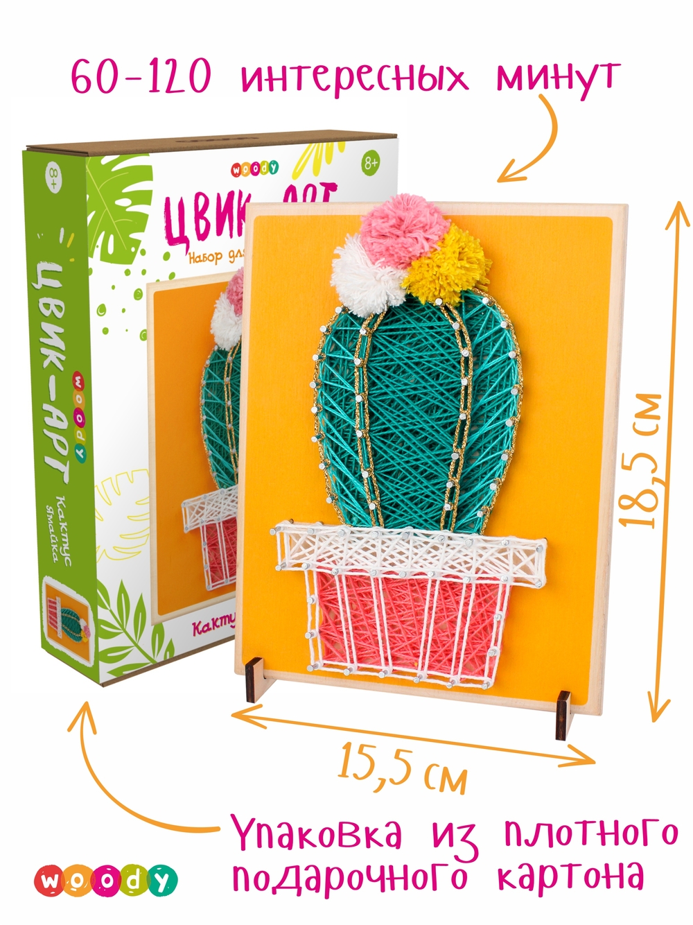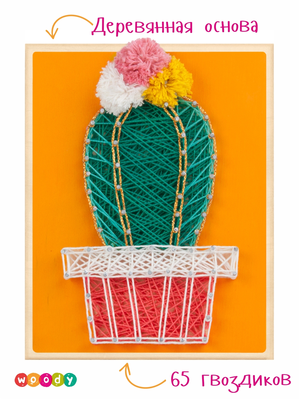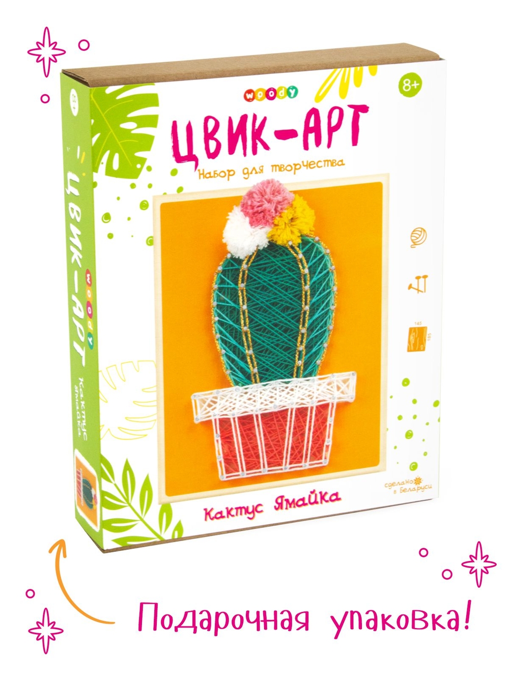 "Цвик-арт. Кактус Ямайка" – набор для творчества и рукоделия в технике стринг-арт (string-art), вязание по гвоздикам. Это удивительная картина нитью, где холст – это дерево, а вместо красок – гвозди и нитки.