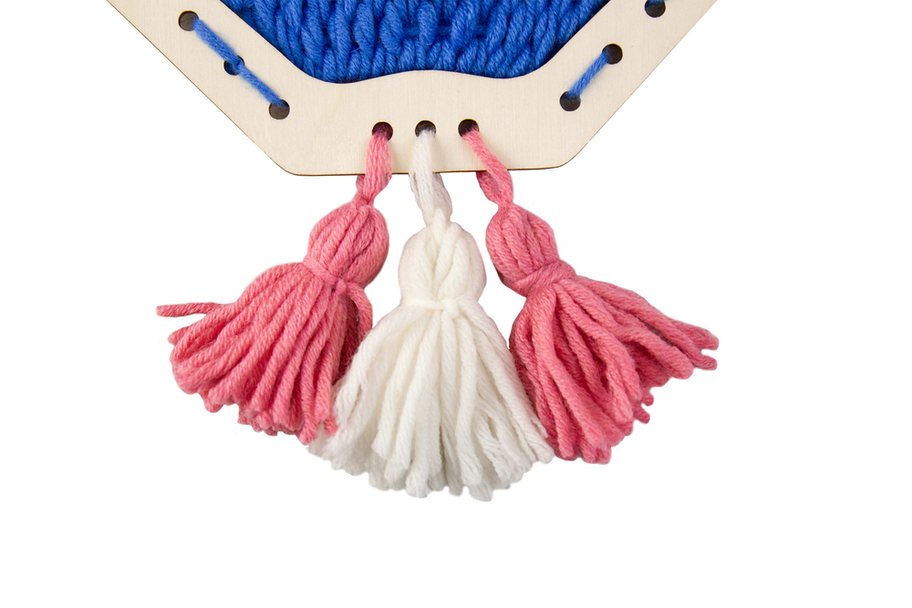 "Олень Яша" – фигурный ткацкий станок. Познакомьтесь с классической техникой ткачества – плетением перекрёстными нитями. В инструкции все этапы описаны подробно, чтобы у вас получился лучший результат. Для создания помпонов в наборе предусмотрено специальное приспособление. Завершите образ, прикрепив, глаза, нос и уши из фетра на клеевой основе.