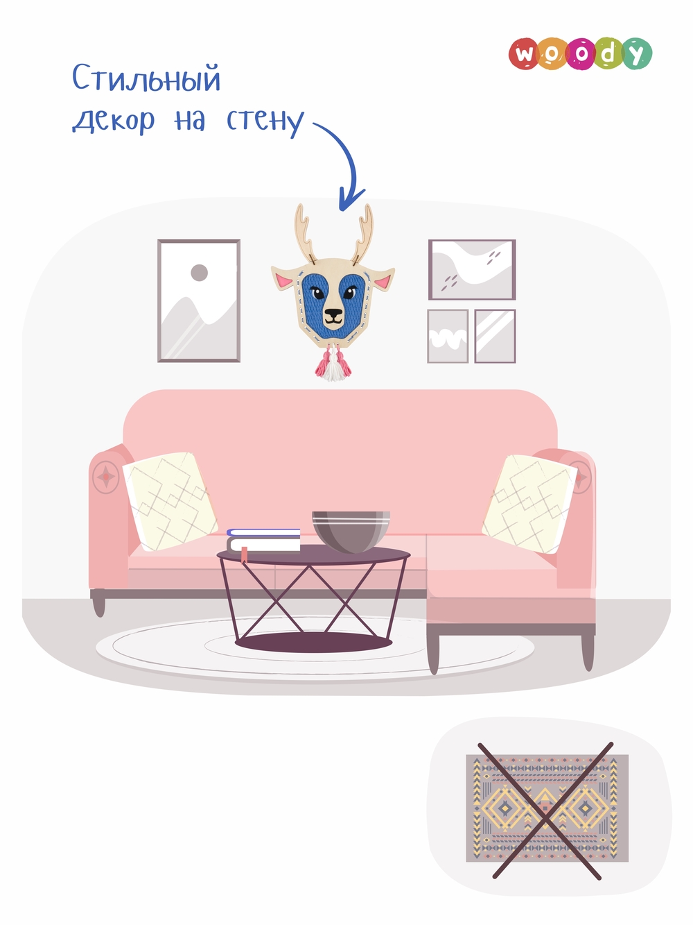 Панно "Олень Яша" отлично смотрится на стене среди картин или в композиции с другими образами серии "НитьАРТ", креативное решение – повесить на дверь, обозначив своё пространство.
