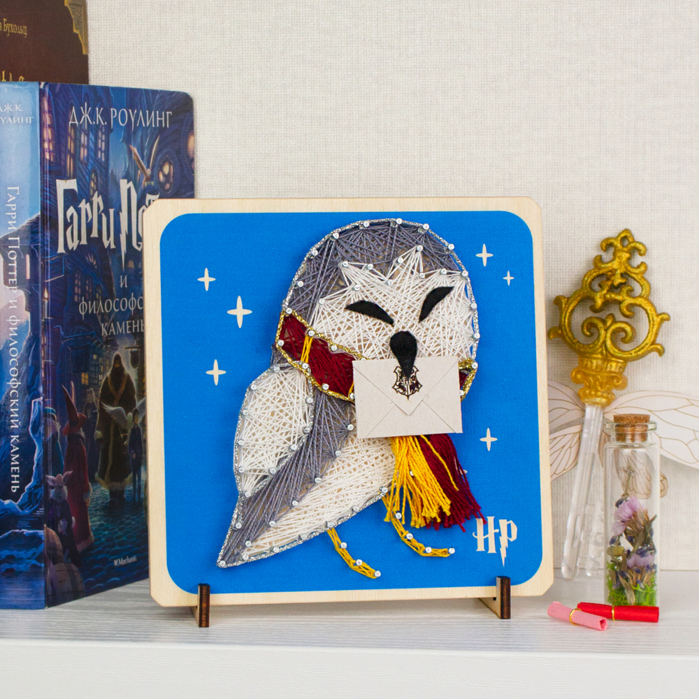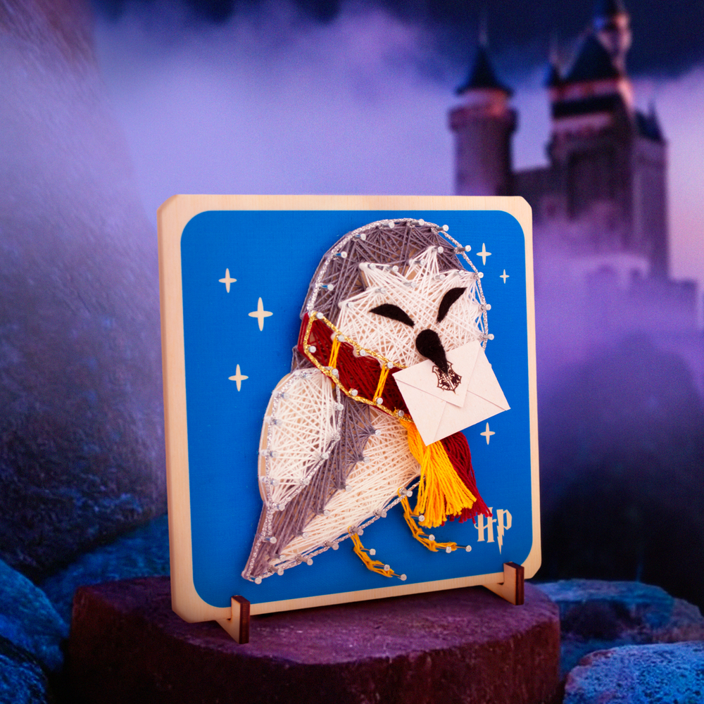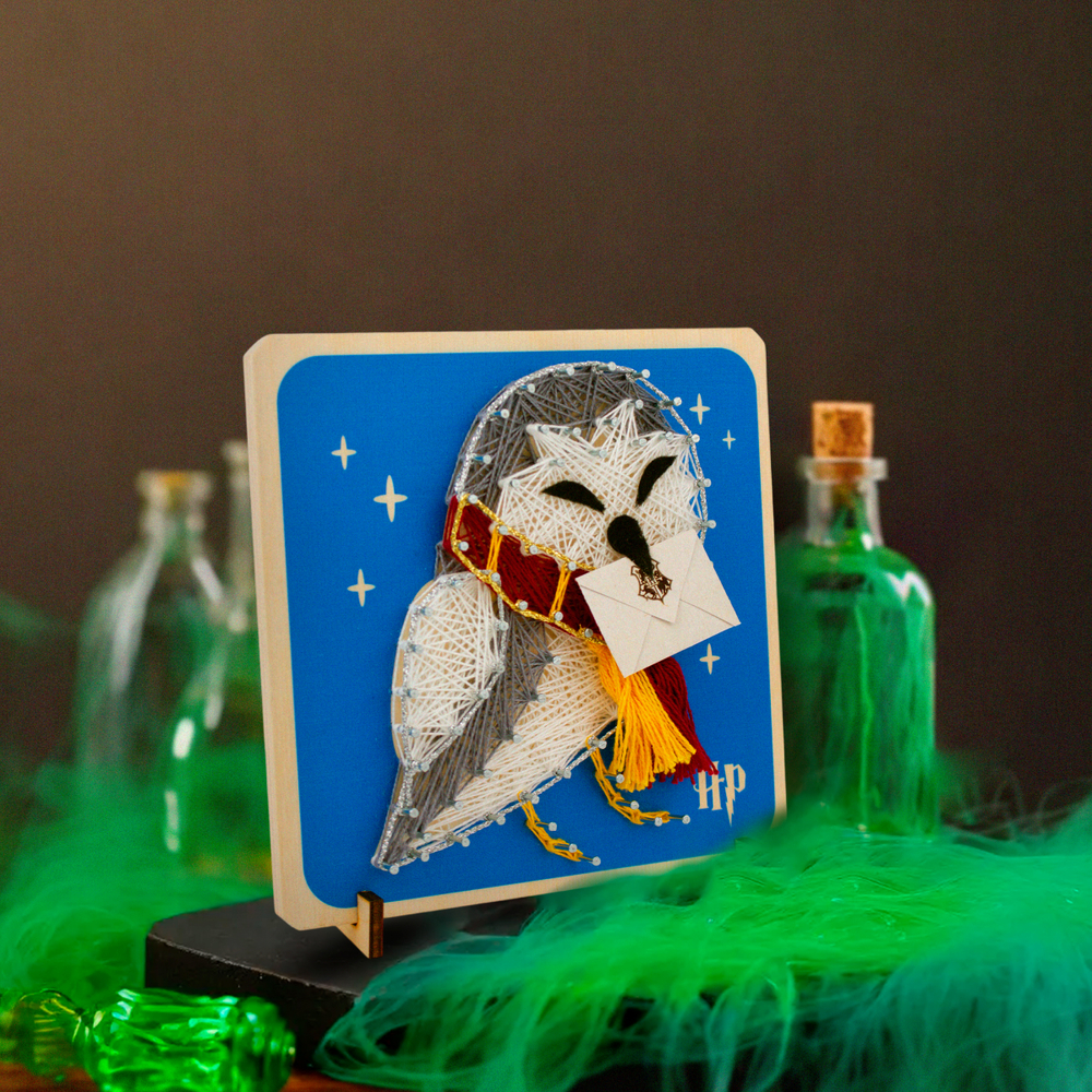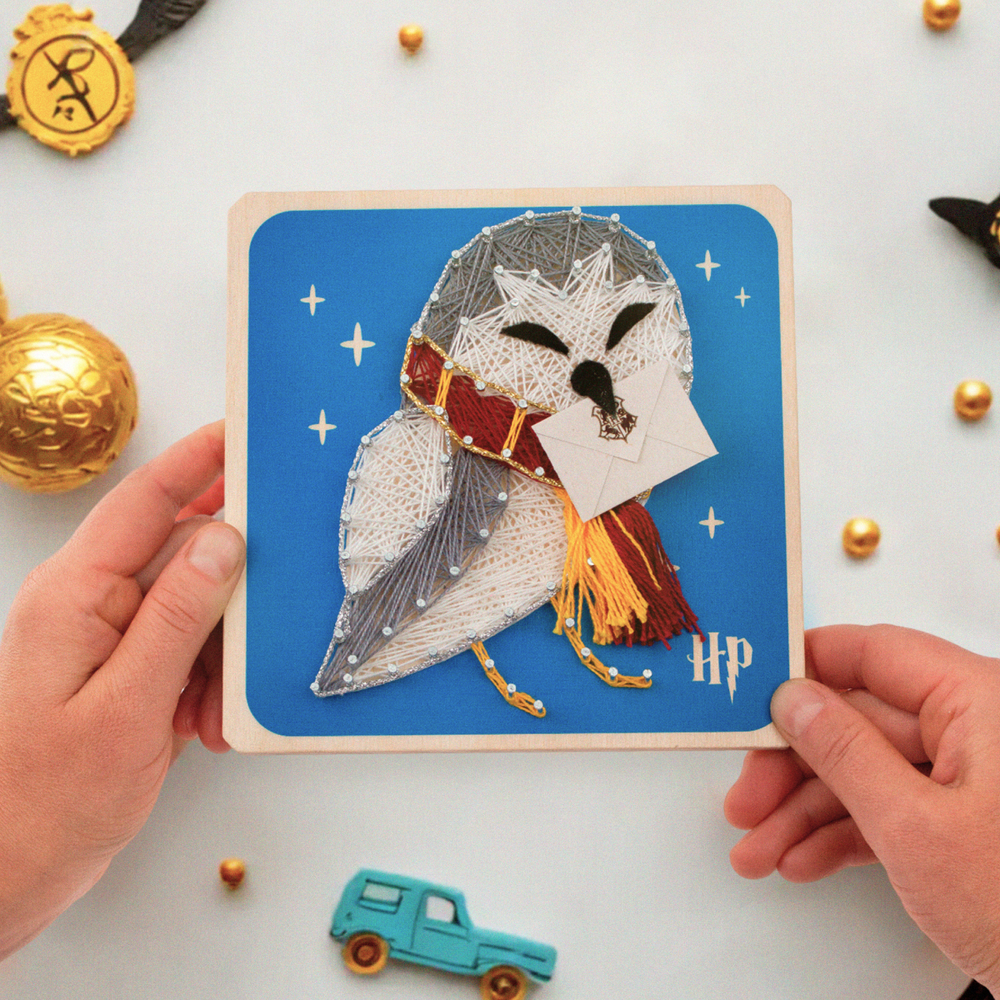 Картина нитью из серии, вдохновлённой романами Гарри Поттер, – это увлекательный набор для творчества для девочек 8 лет и старше, полезный подарок на День Рождения подростку, мальчику, школьнику. Интересна техника стринг арт для взрослых фанатов истории о мире магии. Набор Гарри Поттер – волшебный подарок на любой праздник.