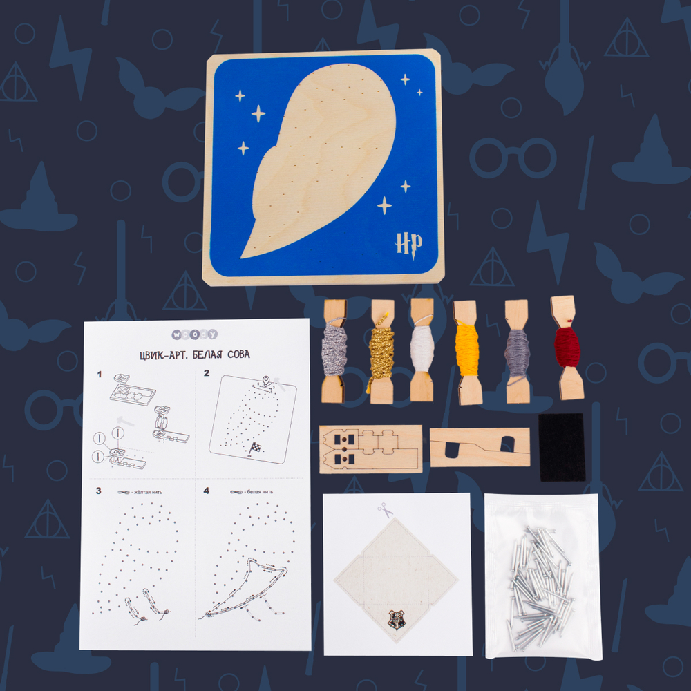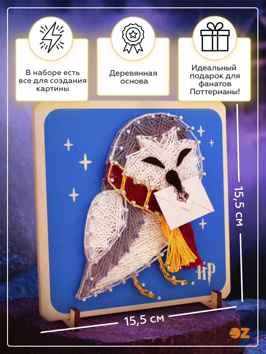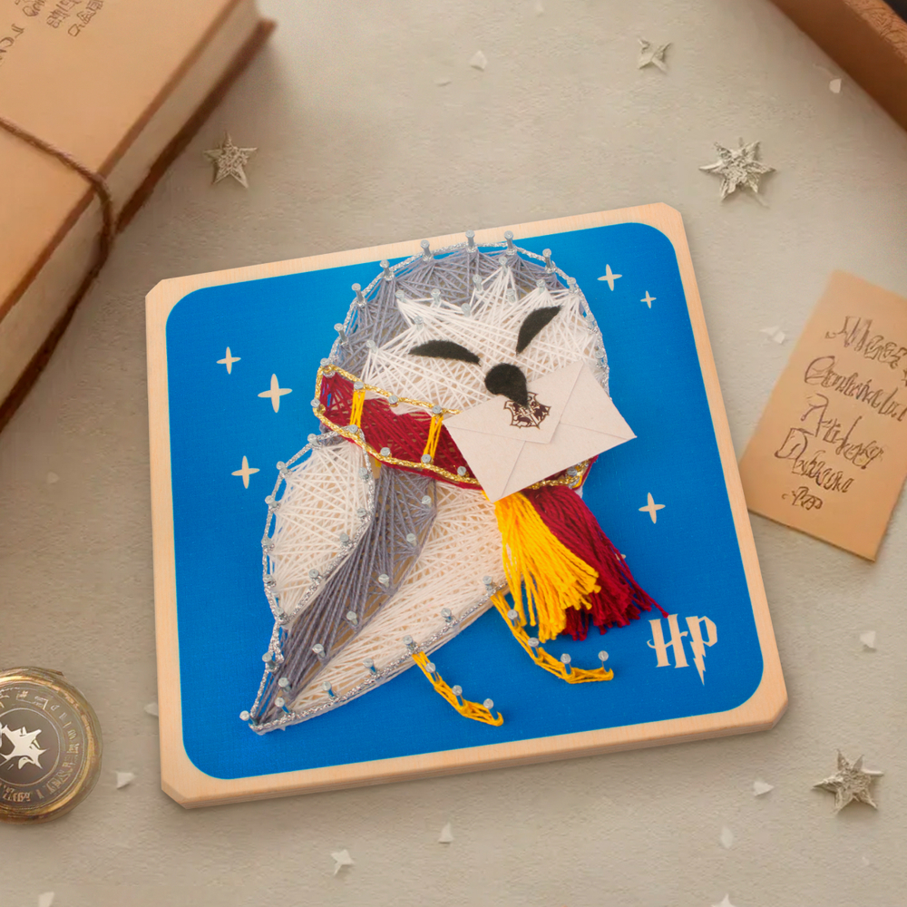 Картина нитью из серии, вдохновлённой романами Гарри Поттер, – это увлекательный набор для творчества для девочек 8 лет и старше, полезный подарок на День Рождения подростку, мальчику, школьнику. Интересна техника стринг арт для взрослых фанатов истории о мире магии. Набор Гарри Поттер – волшебный подарок на любой праздник.