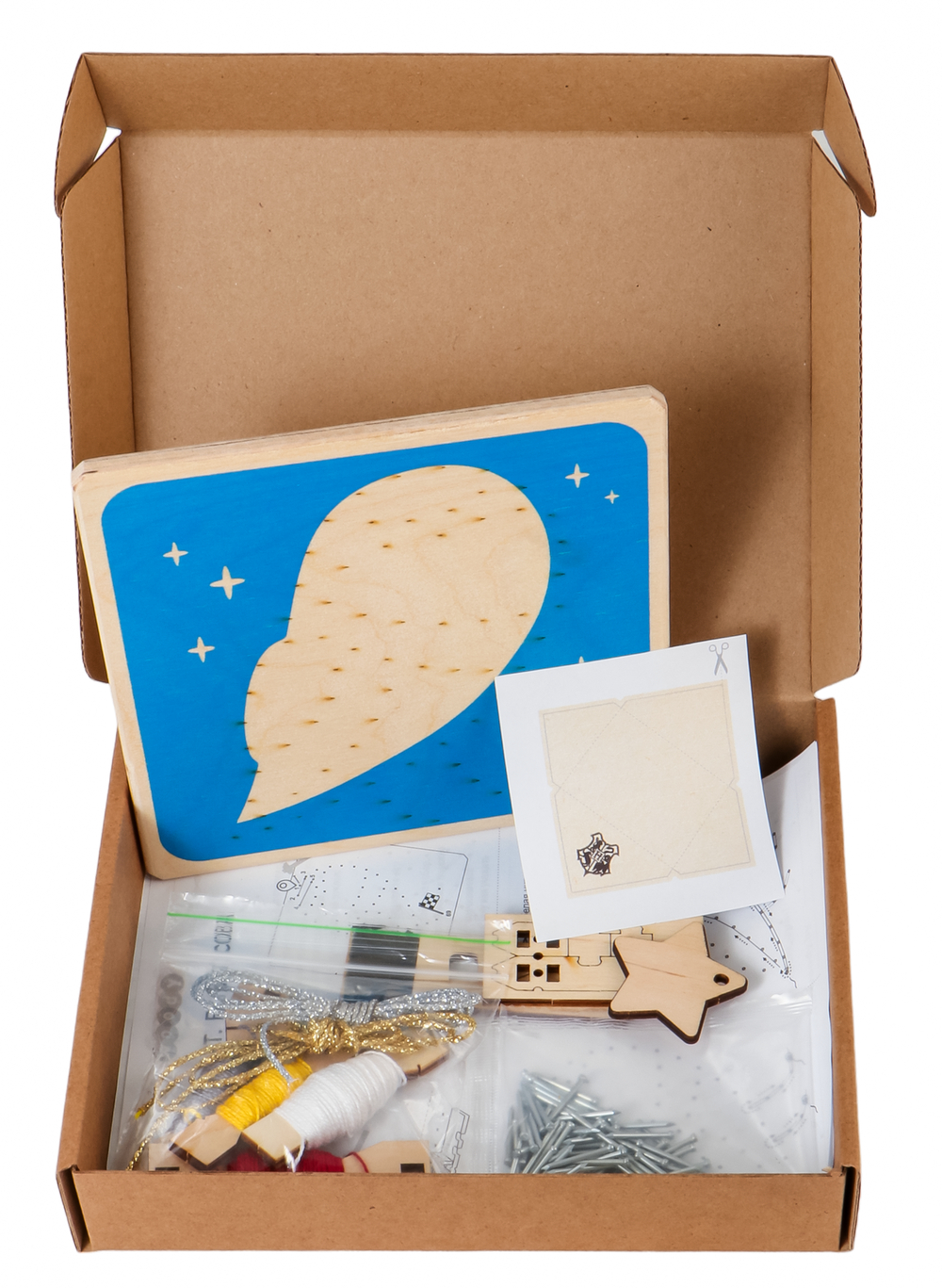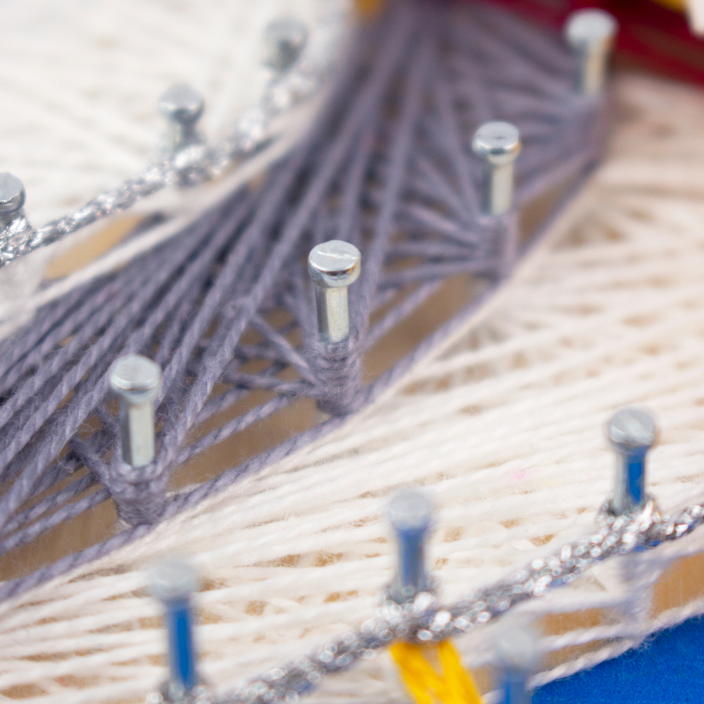 Это картина, в которой сплетаются волшебные свойства ткацкого станка и художественного холста. Картина нитями – современная творческая магия. В стринг арт наборе для творчества вместо холста – дерево, а рисуется картина нитями и гвоздями.