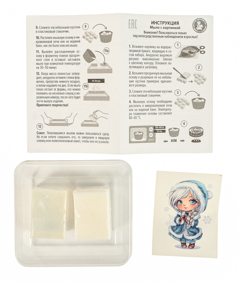 Набор для изготовления мыла "Снегурочка" с картинкой – один из самых красивых наборов с новогодней картинкой. С его помощью ребенок сделает приятный подарок своим друзьям или близким на Новый год.