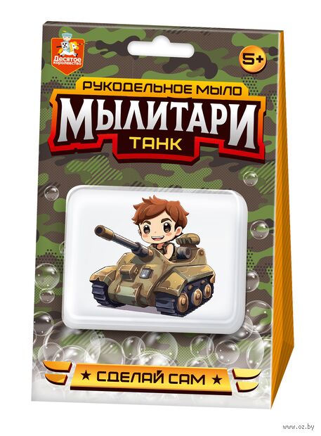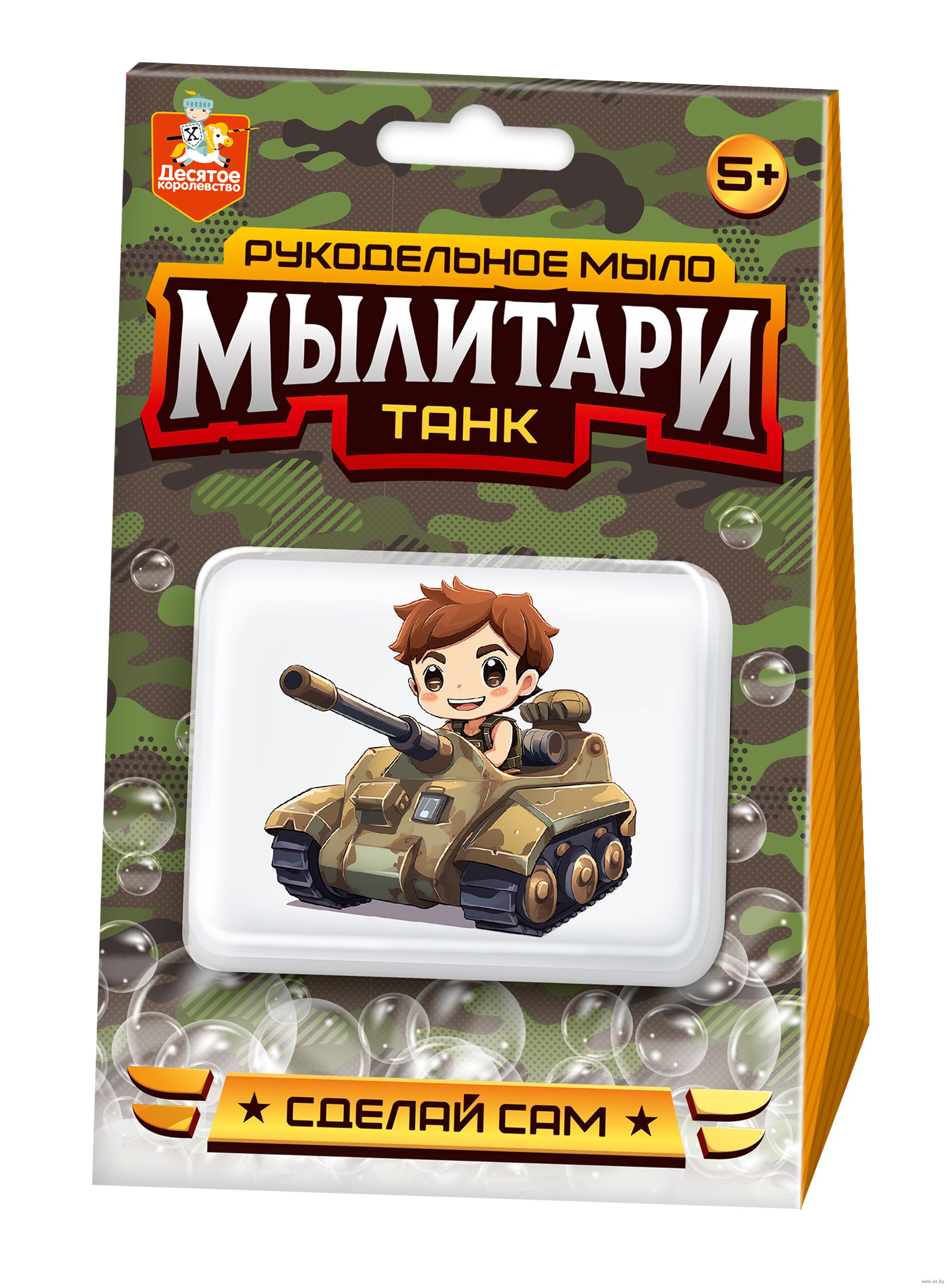 Рукодельное мыло своими руками "Мылитари. Танк" с картинкой – замечательный набор, который понравится мальчишкам. С его помощью ребенок сможет сделать приятный подарок своим близким или друзьям.
