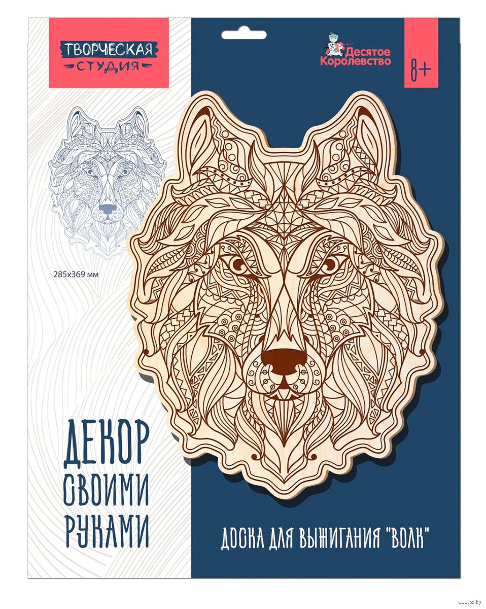 С помощью прибора для выжигания нанесите рисунок по линиям, и у вас получится красивое декоративное панно с изображением Волка, которое станет замечательным украшением интерьера. При желании изображение можно раскрасить красками, фломастерами или цветными карандашами.