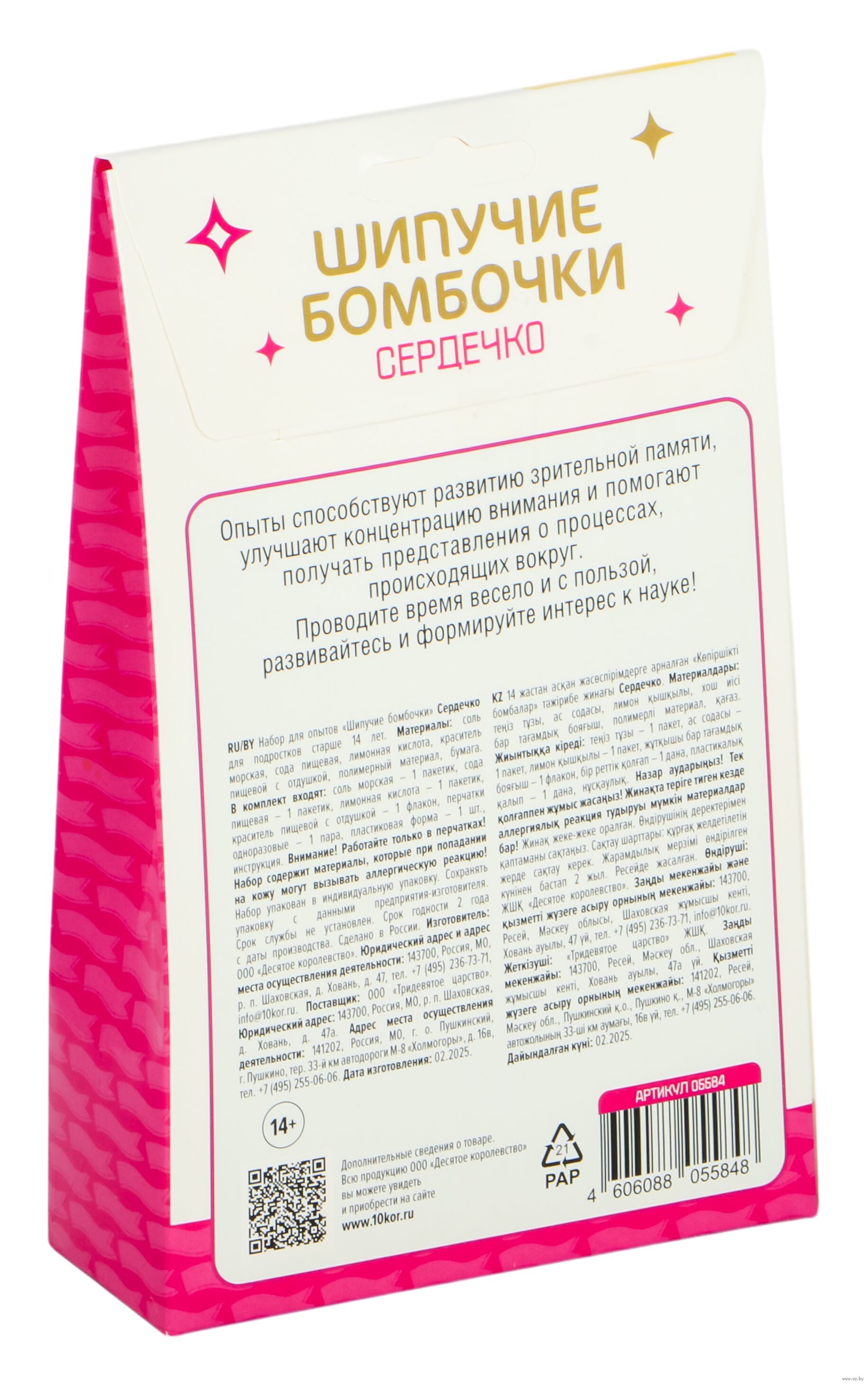 С набором для опытов "Шипучие бомбочки. Сердечко" вы сделаете чудесный подарок для себя или своих близких.