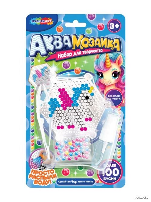 Набор для детского творчества – аквамозаика "Единорог" – отличный подарок для ребёнка. Бусины скрепляются водой (без клея и утюга).