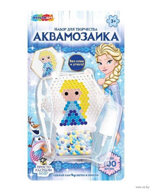 Набор для детского творчества – аквамозаика "Снежная принцесса" – отличный подарок для ребёнка. Бусины скрепляются водой (без клея и утюга).