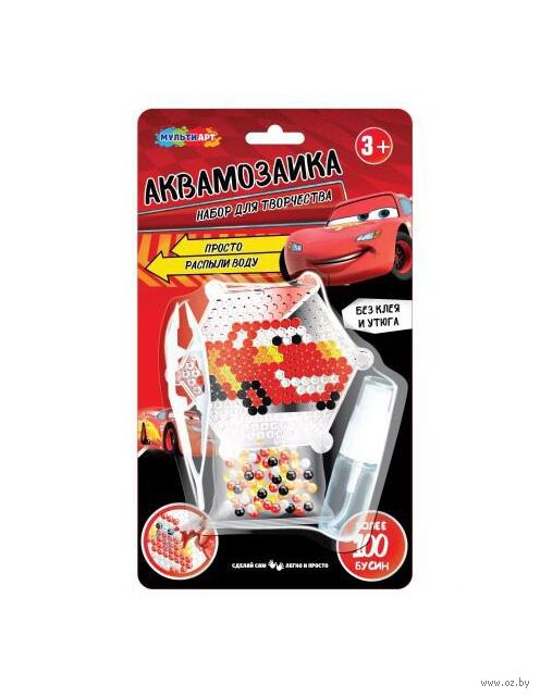 Набор для детского творчества – аквамозаика "Тачки" – отличный подарок для ребёнка. Бусины скрепляются водой (без клея и утюга).