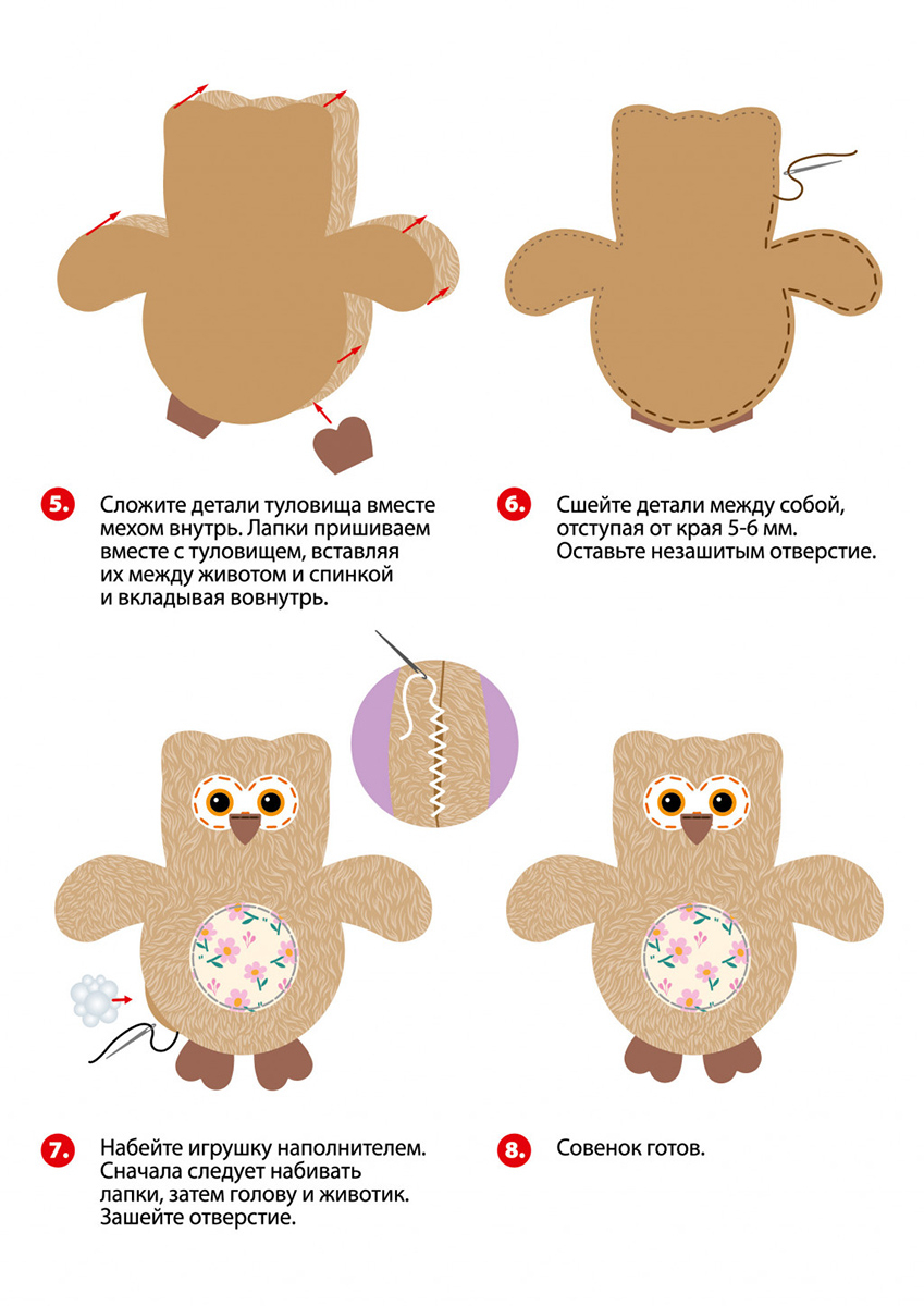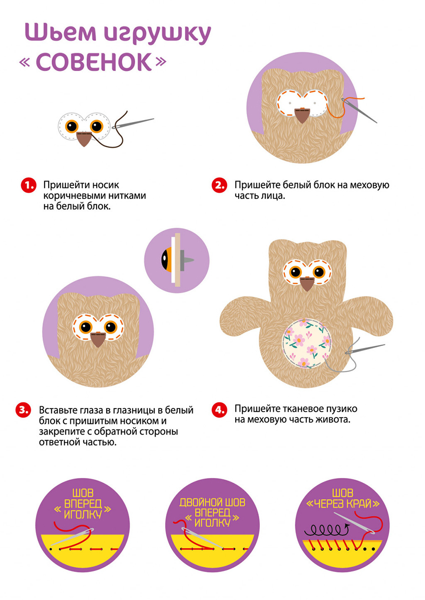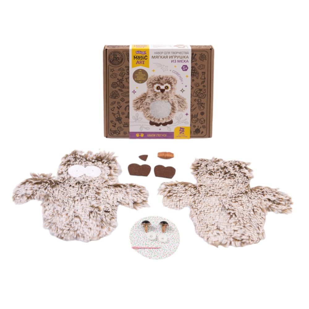 Мягкая игрушка из меха и фетра "Совенок" – это набор для творчества, с помощью которого ребёнок сможет сшить свою самую любимую игрушку. В наборе есть все необходимое для изготовления игрушки.