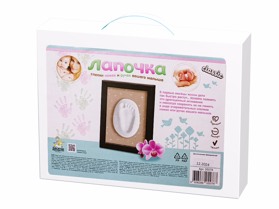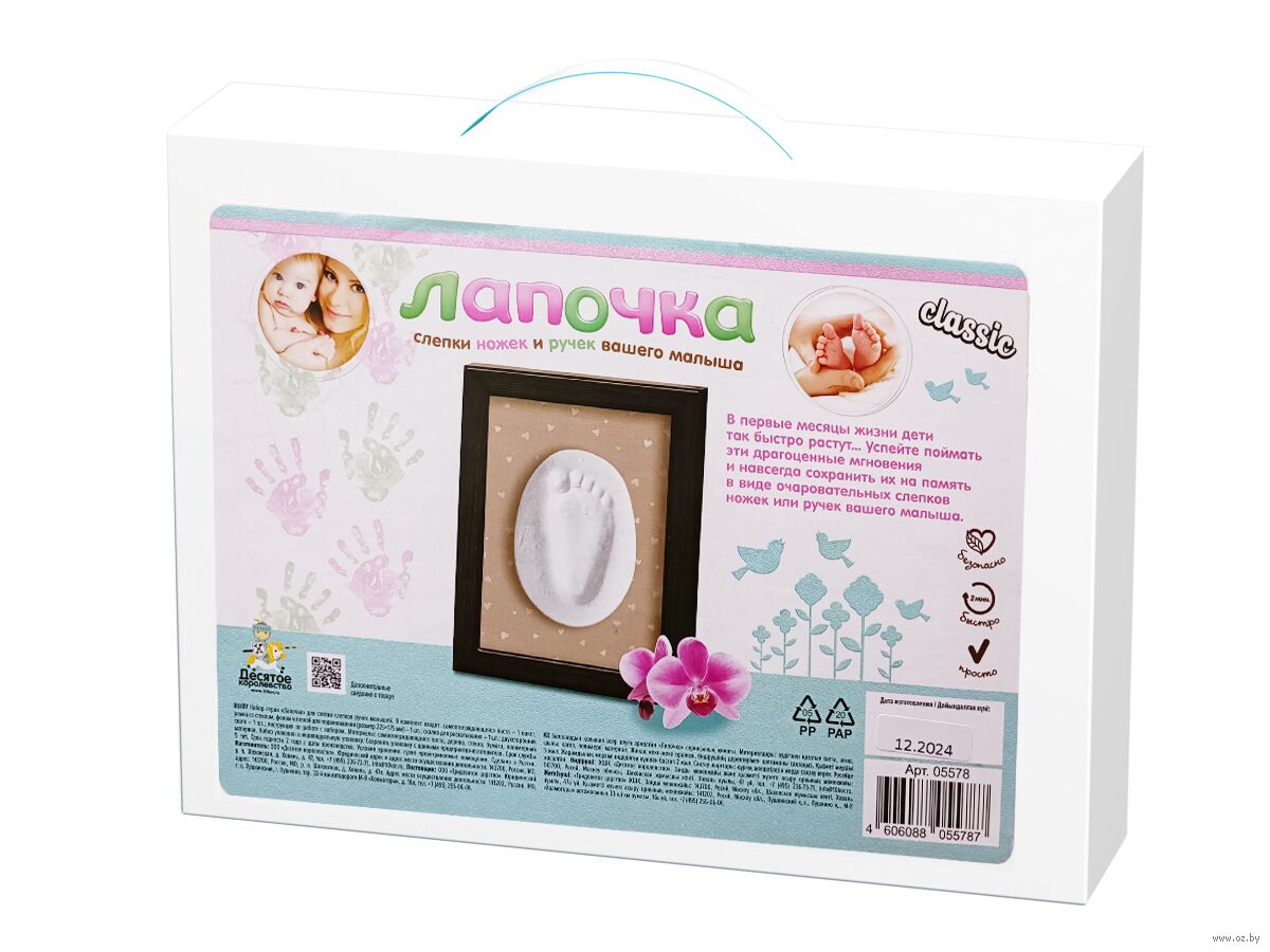 Набор для изготовления слепков ножек или ручек малыша "Лапочка. Классик" в рамке – лучший подарок молодым родителям на рождение малыша!