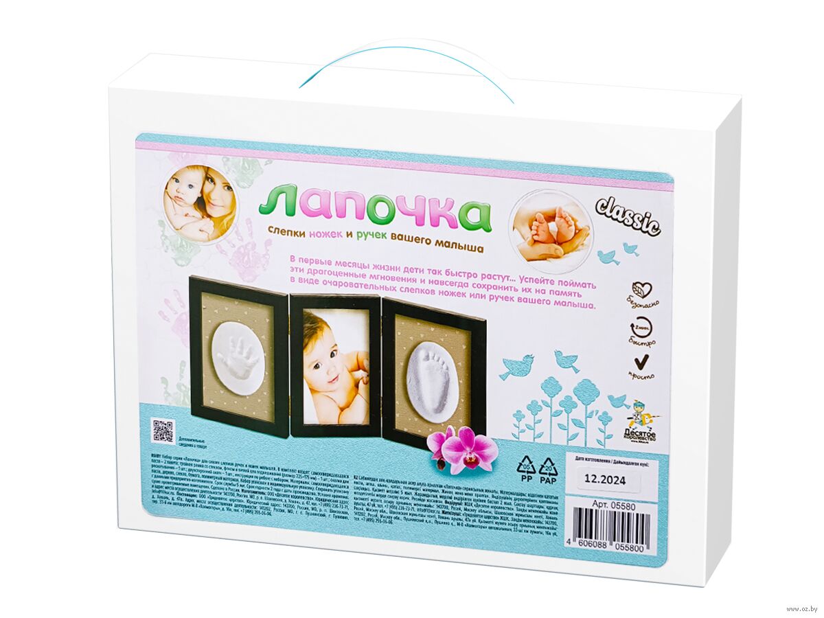 Набор для изготовления слепков ножек или ручек малыша "Лапочка. Классик" в рамке – лучший подарок молодым родителям на рождение малыша!