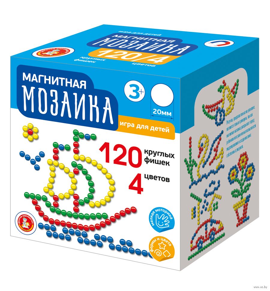 Магнитная мозаика – это игровой набор, с помощью которого малыш может собрать большое количество веселых разноцветных изображений растений, животных, транспорта, домиков, человечков и многое другое на любой металлической поверхности, например, на холодильнике. Игровое поле в набор не входит!