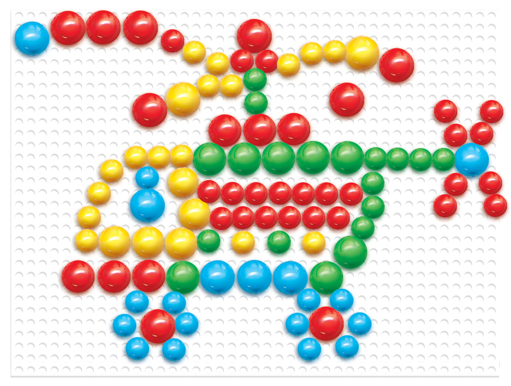 Разместите плату перед ребёнком и разложите вокруг фишки разных цветов и размеров. Вставляйте фишки в отверстия игровой платы, выстраивая различные композиции. Для готовых сюжетов воспользуйтесь рисунками, размещенными на упаковках, или же придумывайте и создавайте свои собственные уникальные произведения!