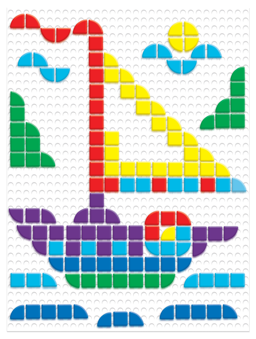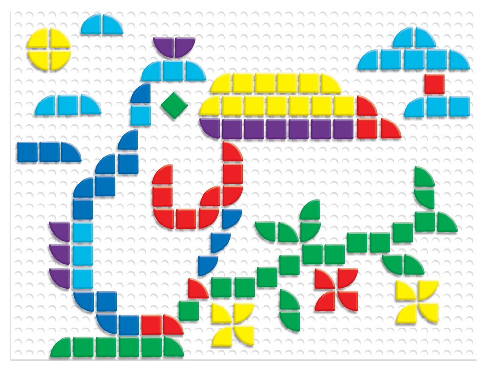 Разместите плату перед ребёнком и разложите вокруг фишки разных цветов и размеров. Вставляйте фишки в отверстия игровой платы, выстраивая различные композиции. Для готовых сюжетов воспользуйтесь рисунками, размещенными на упаковках, или же придумывайте и создавайте свои собственные уникальные произведения!