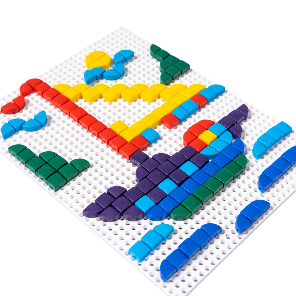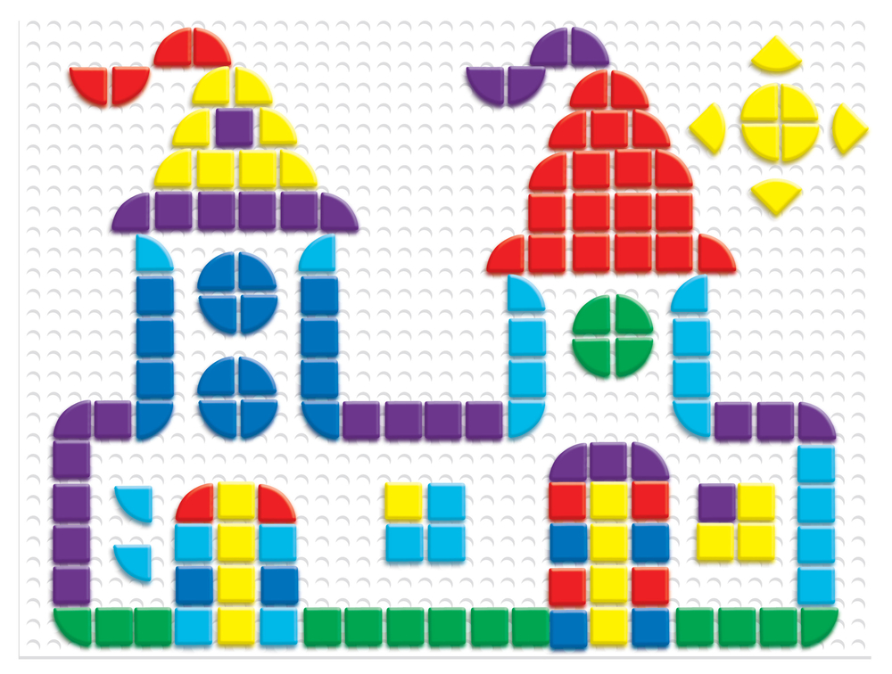 В набор входят 180 красочных фишек шести цветов, которые дают неограниченный простор для развития фантазии ребёнка и позволяют экспериментировать, создавая не только простые узоры, но и целые пейзажи, города и фигурки человечков. Фишки изготовлены из качественного пластика, не имеющего запаха. Поверхность фишек гладкая, все углы скруглены, благодаря чему игра будет безопасной для ребёнка.
