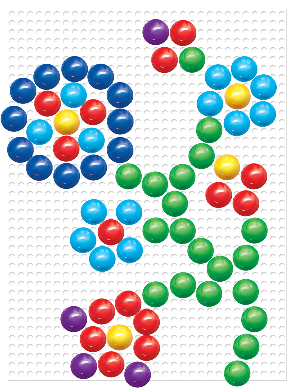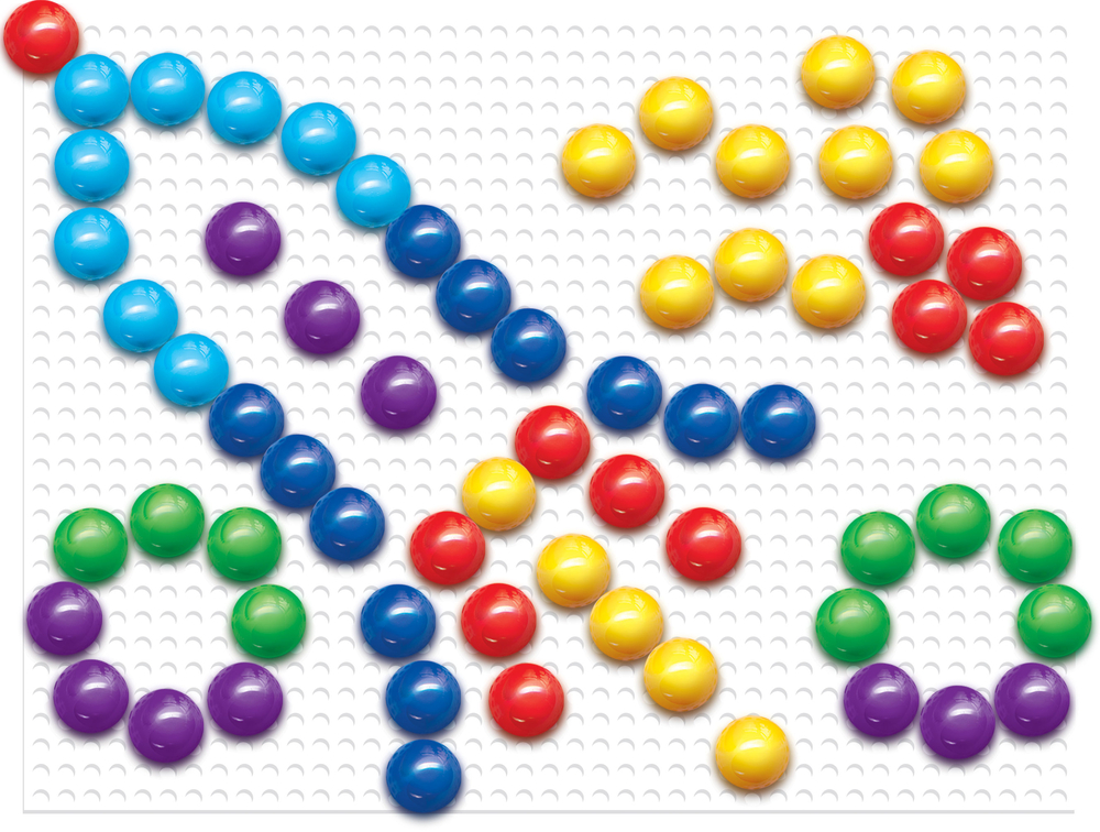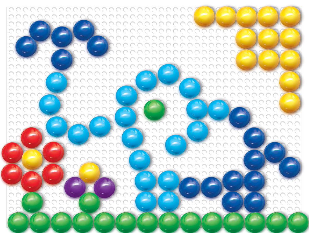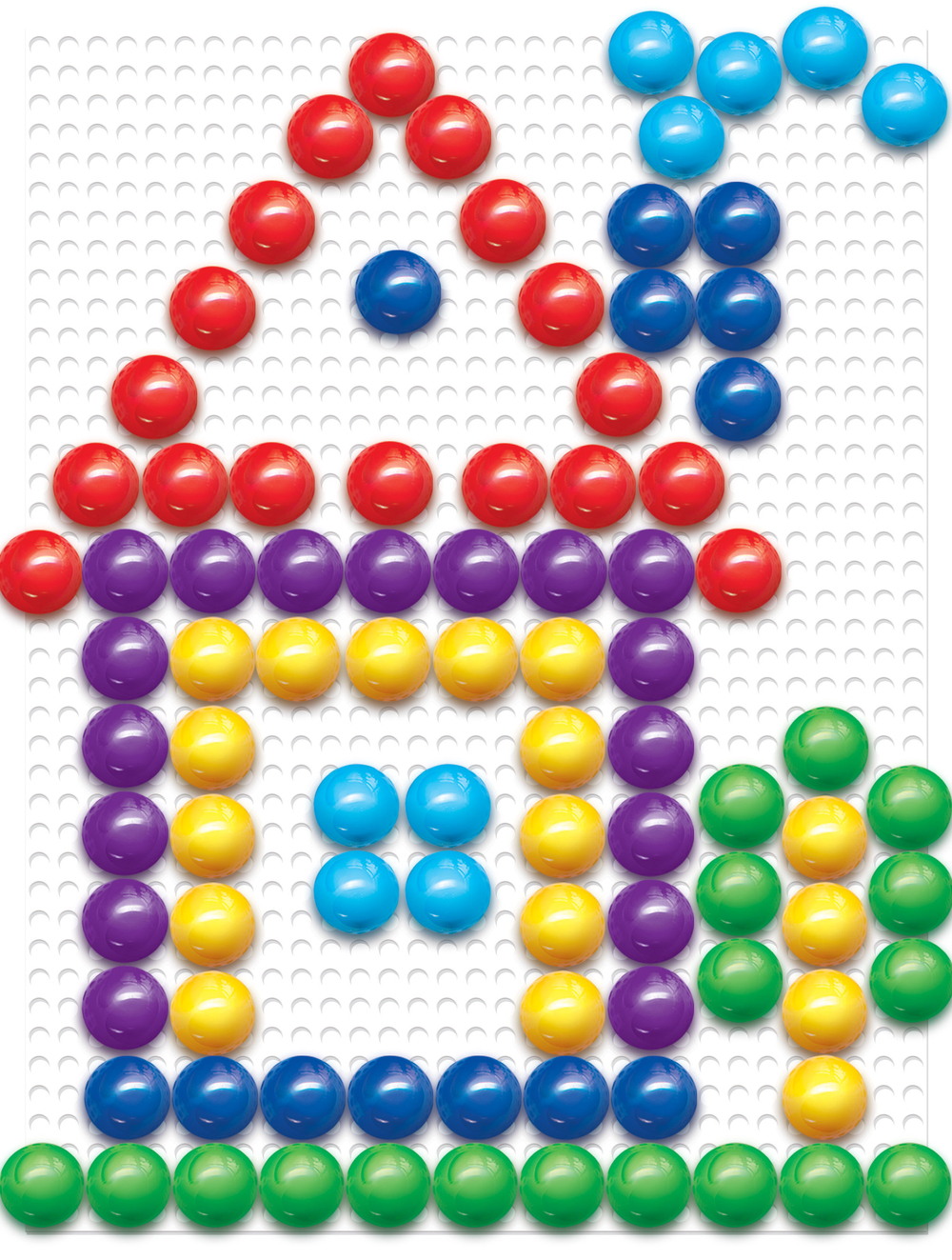 Разместите плату перед ребёнком и разложите вокруг фишки разных цветов. Вставляйте фишки в отверстия игровой платы, выстраивая различные композиции. Для готовых сюжетов воспользуйтесь рисунками, размещенными на упаковках, или же придумывайте и создавайте свои собственные уникальные произведения!