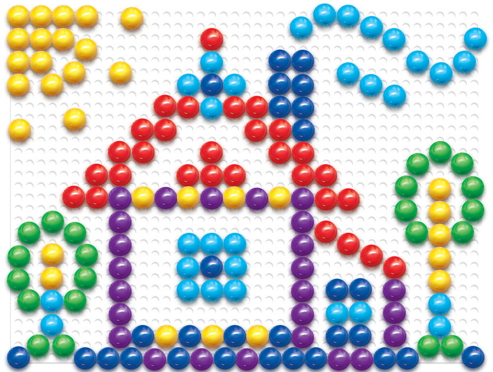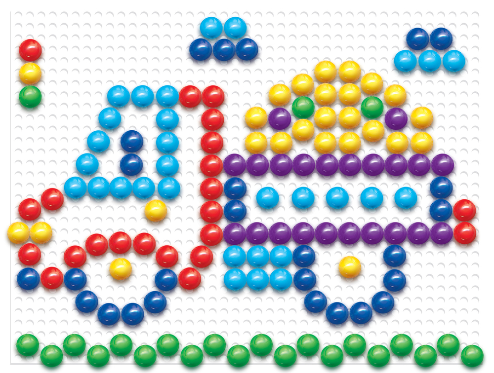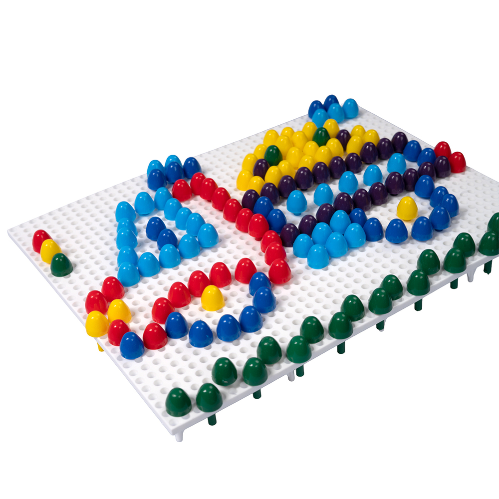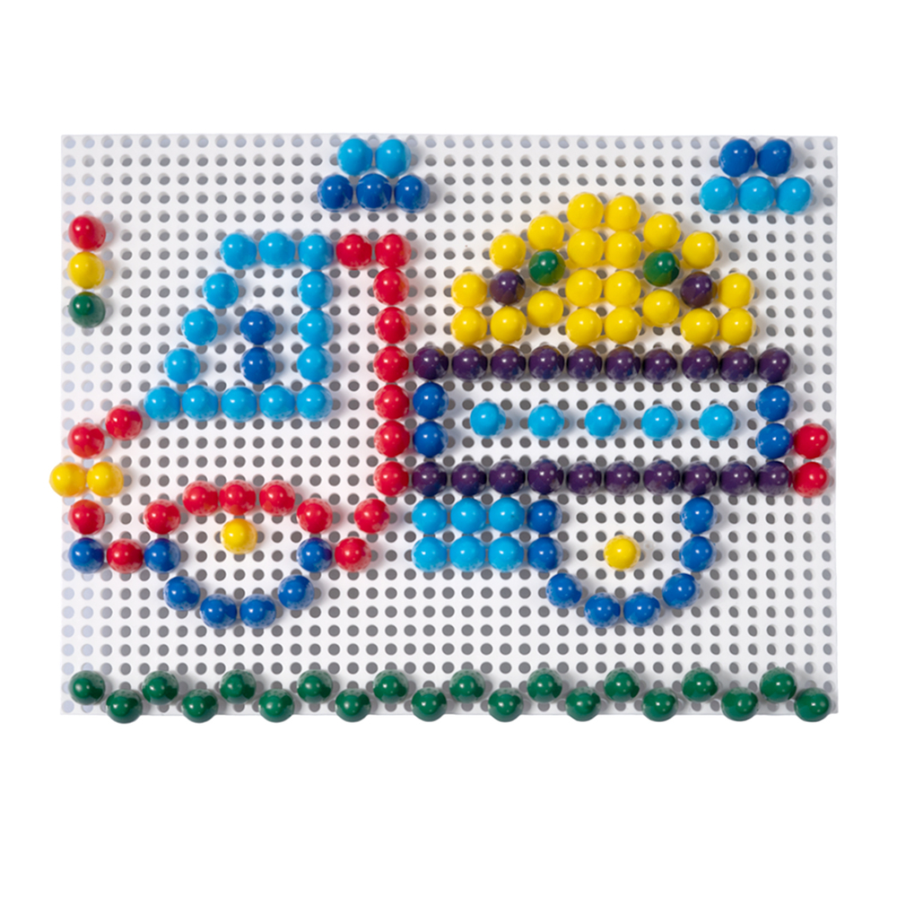 Разместите плату перед ребёнком и разложите вокруг фишки разных цветов. Вставляйте фишки в отверстия игровой платы, выстраивая различные композиции. Для готовых сюжетов воспользуйтесь рисунками, размещенными на упаковках, или же придумывайте и создавайте свои собственные уникальные произведения!
