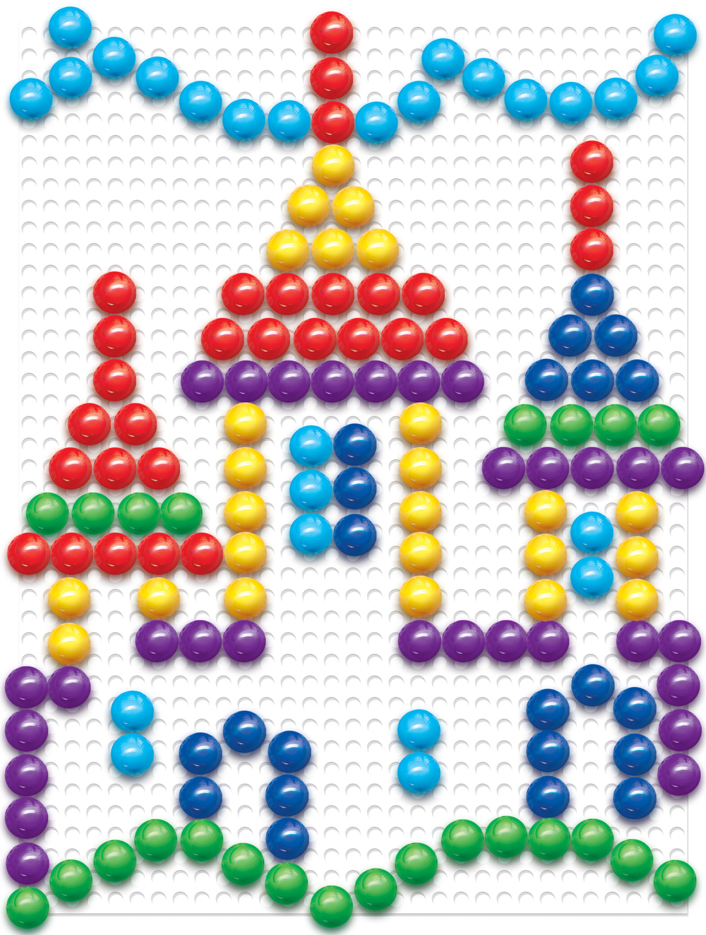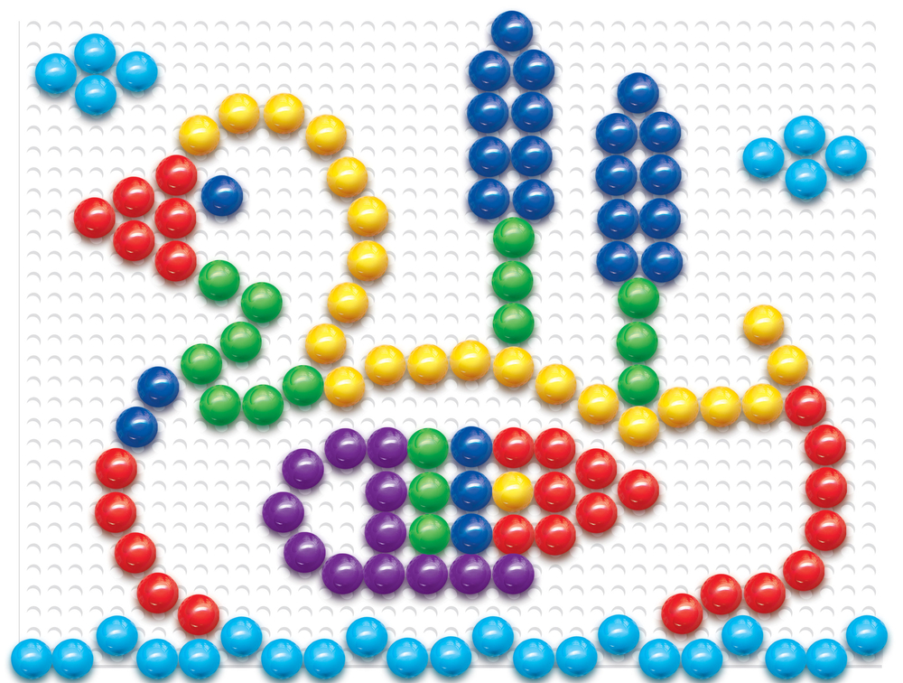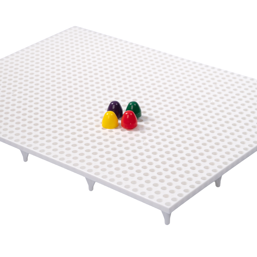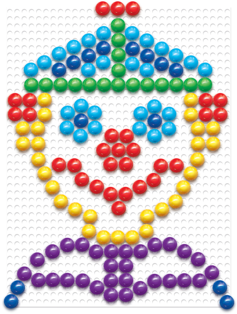 Разместите плату перед ребёнком и разложите вокруг фишки разных цветов. Вставляйте фишки в отверстия игровой платы, выстраивая различные композиции. Для готовых сюжетов воспользуйтесь рисунками, размещенными на упаковках, или же придумывайте и создавайте свои собственные уникальные произведения!
