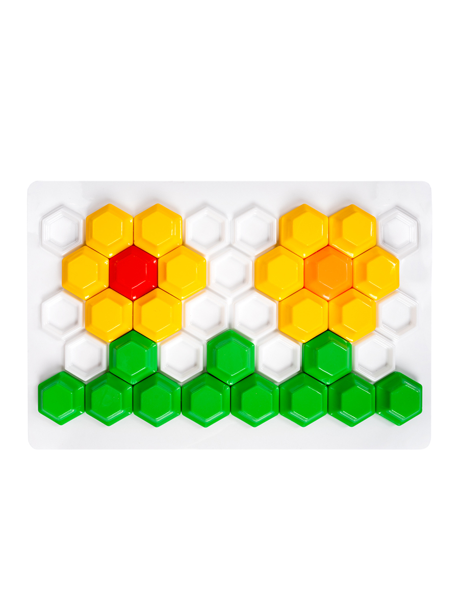 Игра в шестигранную мозаику Baby Toys (5 цветов, 60 элементов) способствует развитию мелкой моторики, логического мышления, развивает воображение и учит различать оттенки цветов.