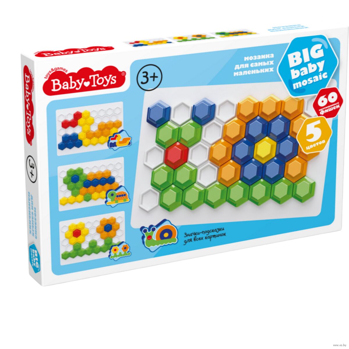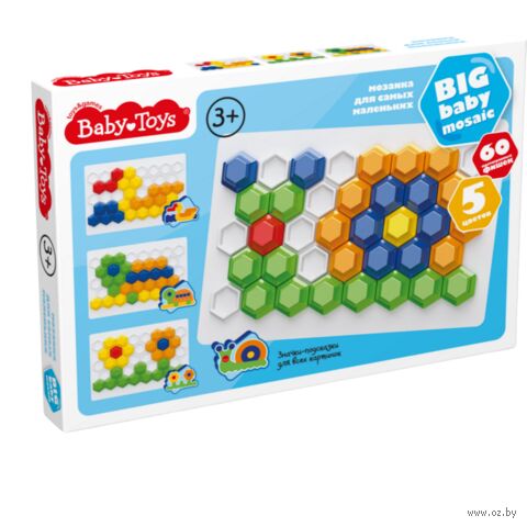 Детская шестигранная мозаика Baby Toys (5 цветов, 60 элементов) – интересная развивающая игра для самых маленьких. Мозаика складывается на специальном игровом поле по указанным схемам или в произвольном порядке. Крупный размер элементов и отсутствие острых углов обеспечивают безопасную игру для вашего ребёнка.