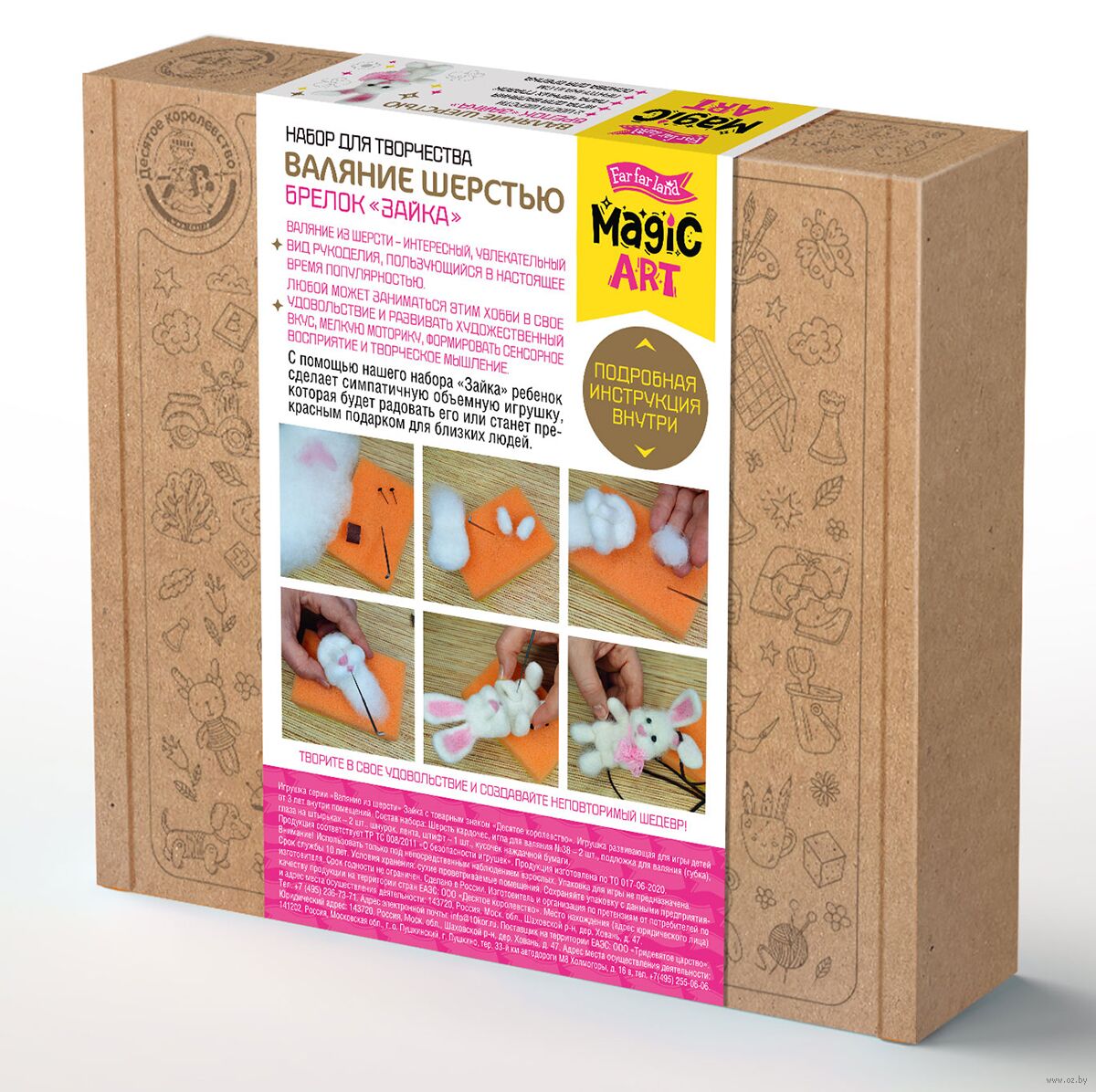 Набор для валяния "Зайка" включает все необходимое для создания игрушки или брелока из шерсти.