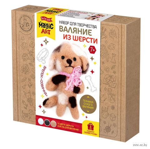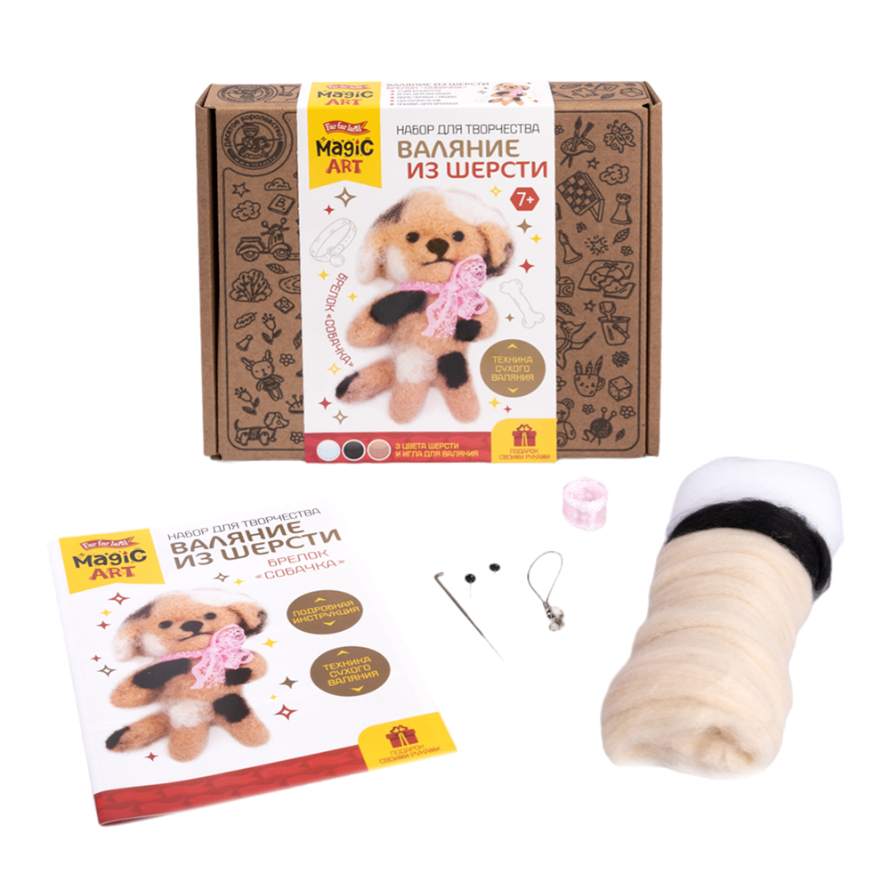 Набор для валяния "Собачка" включает все необходимое для создания игрушки или брелока из шерсти.