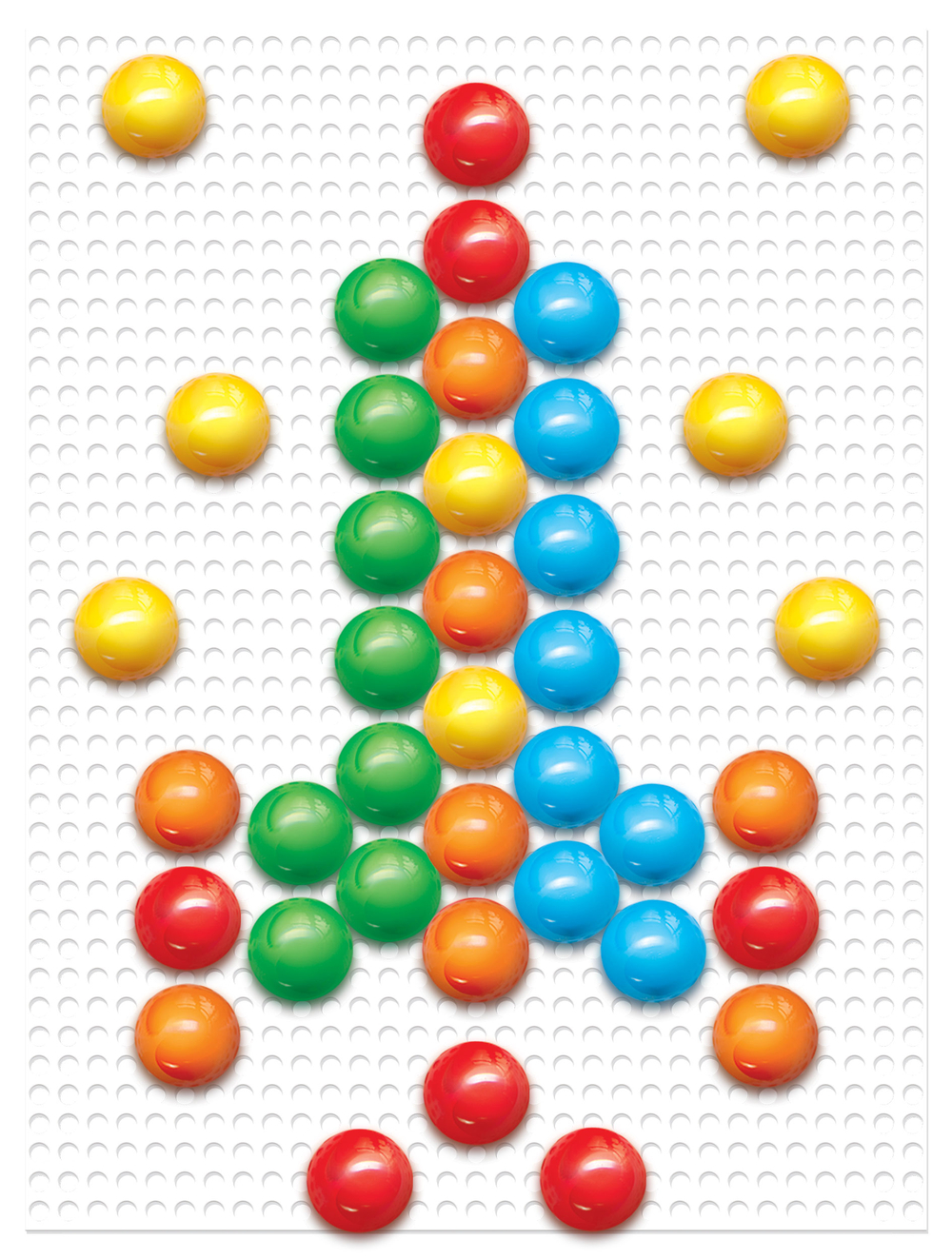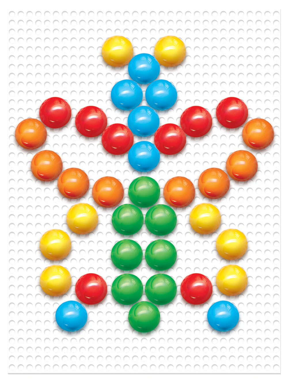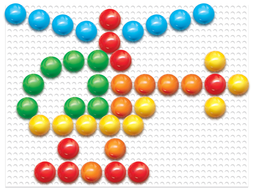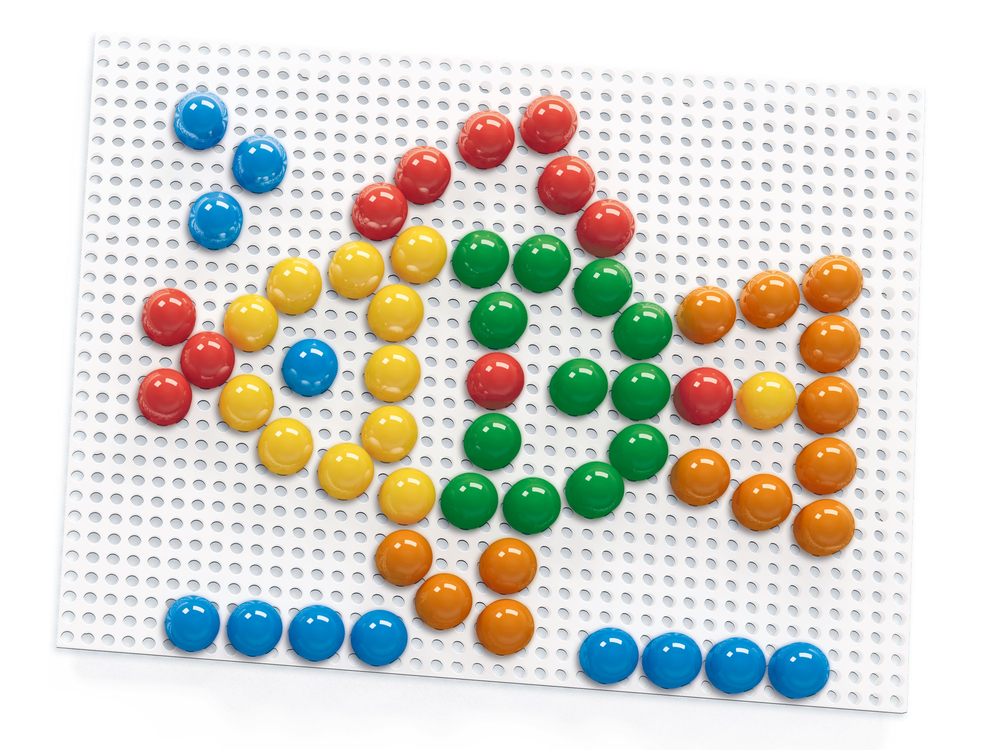Разместите плату перед ребёнком и разложите вокруг фишки разных цветов. Вставляйте фишки в отверстия игровой платы, выстраивая различные композиции. Для готовых сюжетов воспользуйтесь рисунками, размещенными на упаковках, или же придумывайте и создавайте свои собственные уникальные произведение.