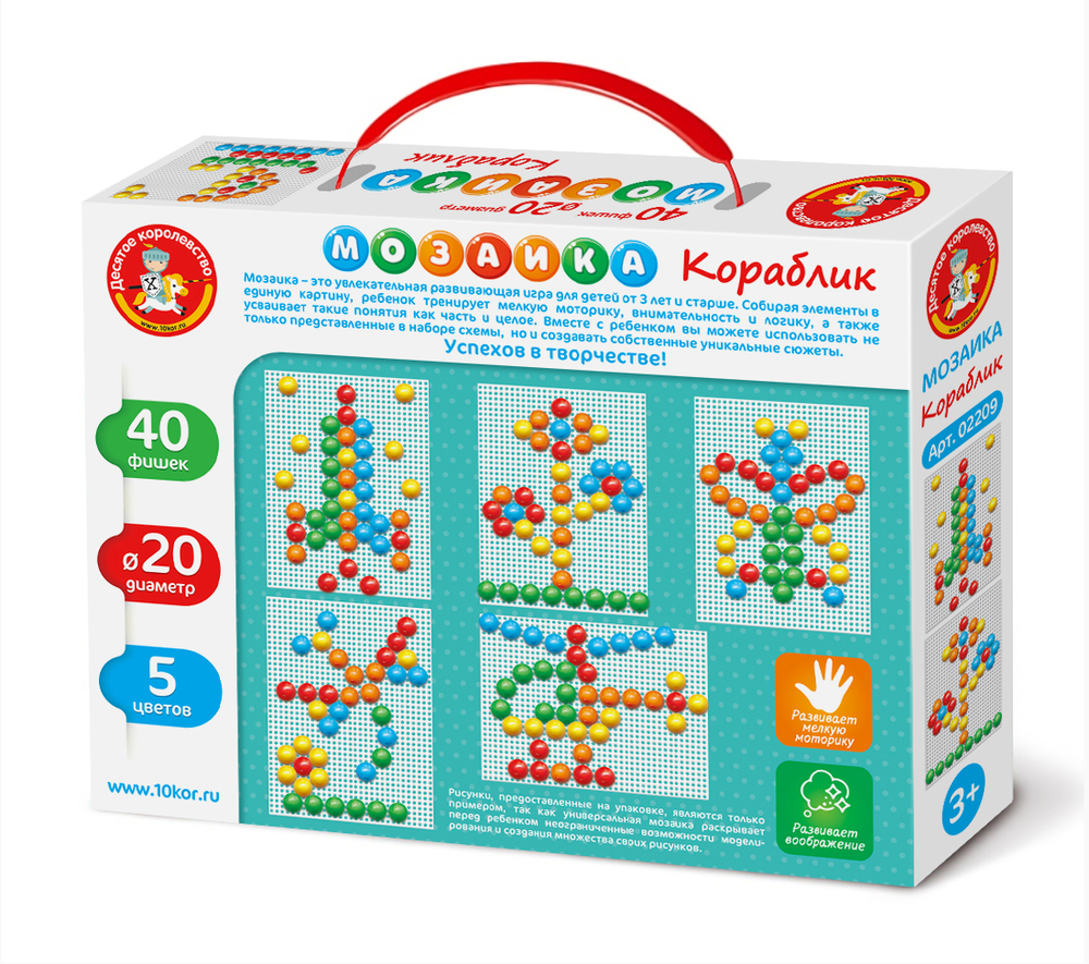 С помощью мозаики "Кораблик" ваш ребёнок сможет собирать яркие картинки из цветных фишек и потренирует воображение и мелкую моторику рук.