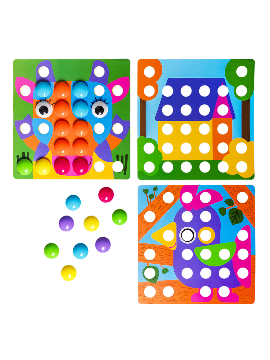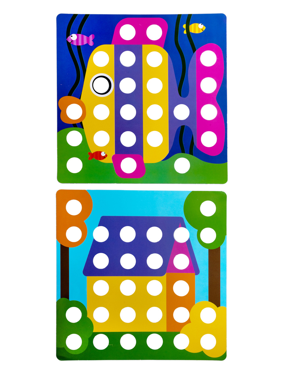 Задача малыша – правильно расставить фишки на картинке, подобрав их по цвету.