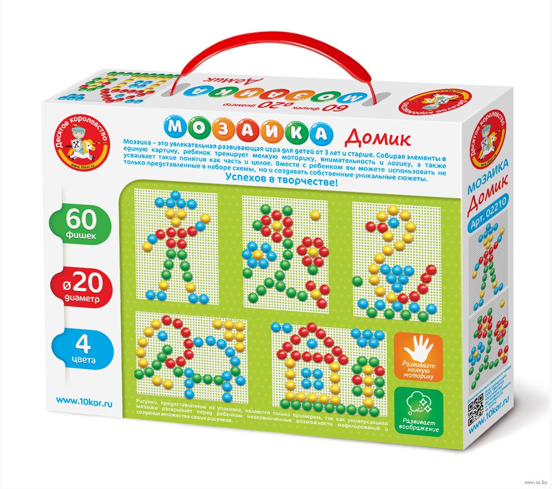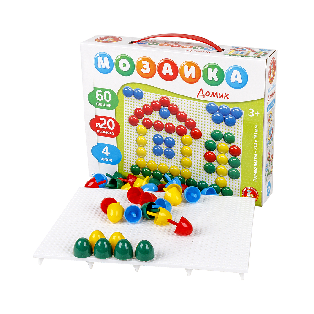 Мозаика "Домик" из 60 деталей разовьёт творческую фантазию и аккуратность вашего малыша!