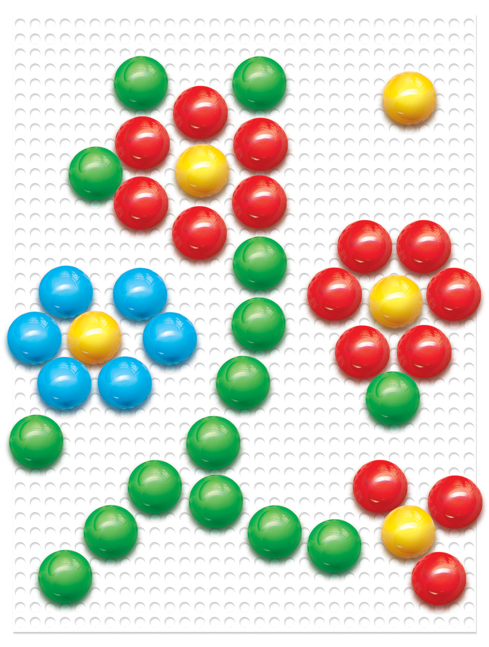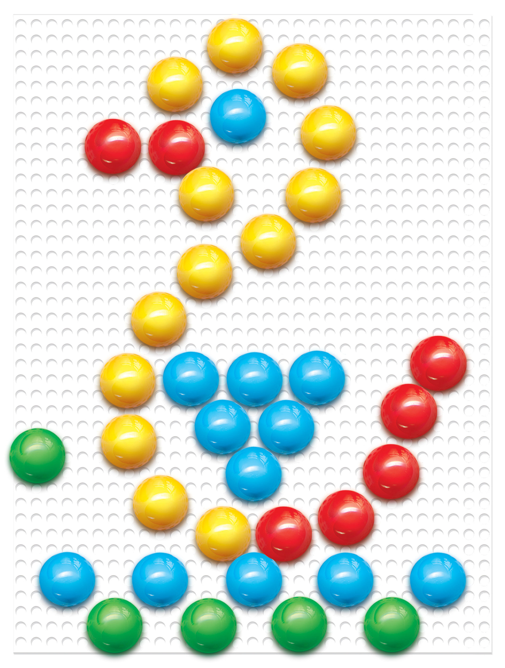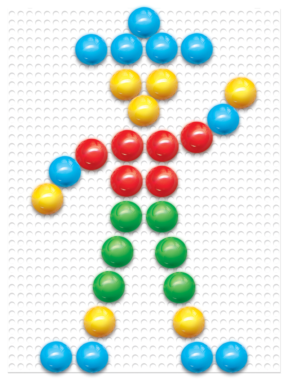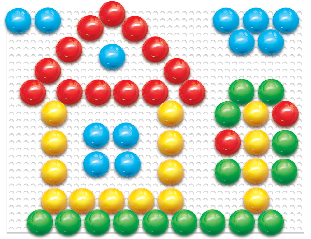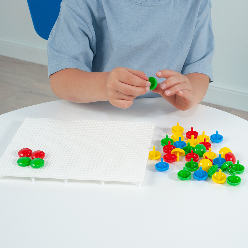 Разместите плату перед ребёнком и разложите вокруг фишки разных цветов. Вставляйте фишки в отверстия игровой платы, выстраивая различные композиции. Для готовых сюжетов воспользуйтесь рисунками, размещенными на упаковках, или же придумывайте и создавайте свои собственные уникальные произведения!