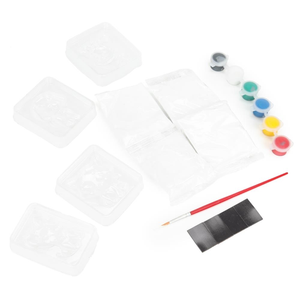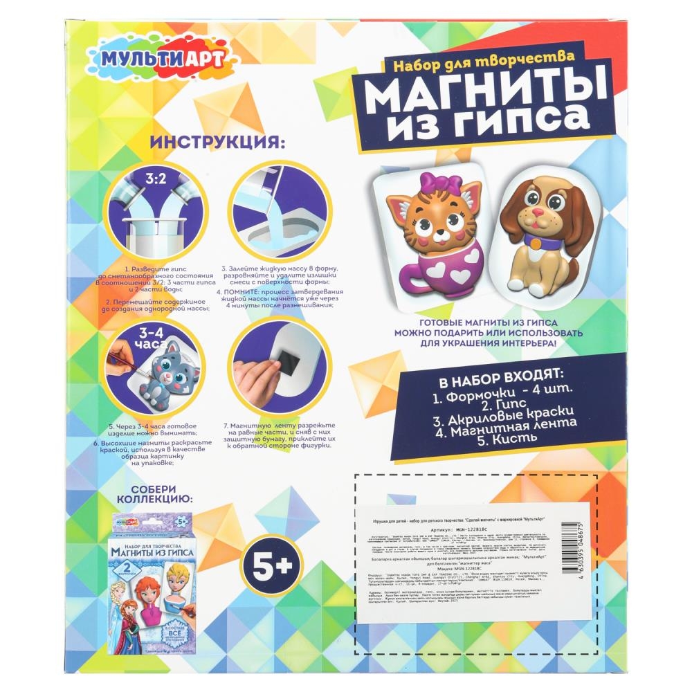При помощи этого набора маленькие мастера смогут создать 4 ярких магнита с гипсовыми фигурками в виде милых домашних питомцев. Для этого в наборе имеется всё необходимое.