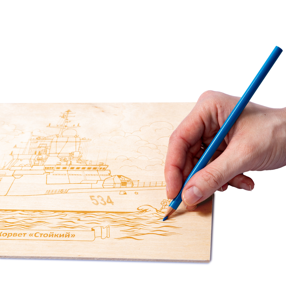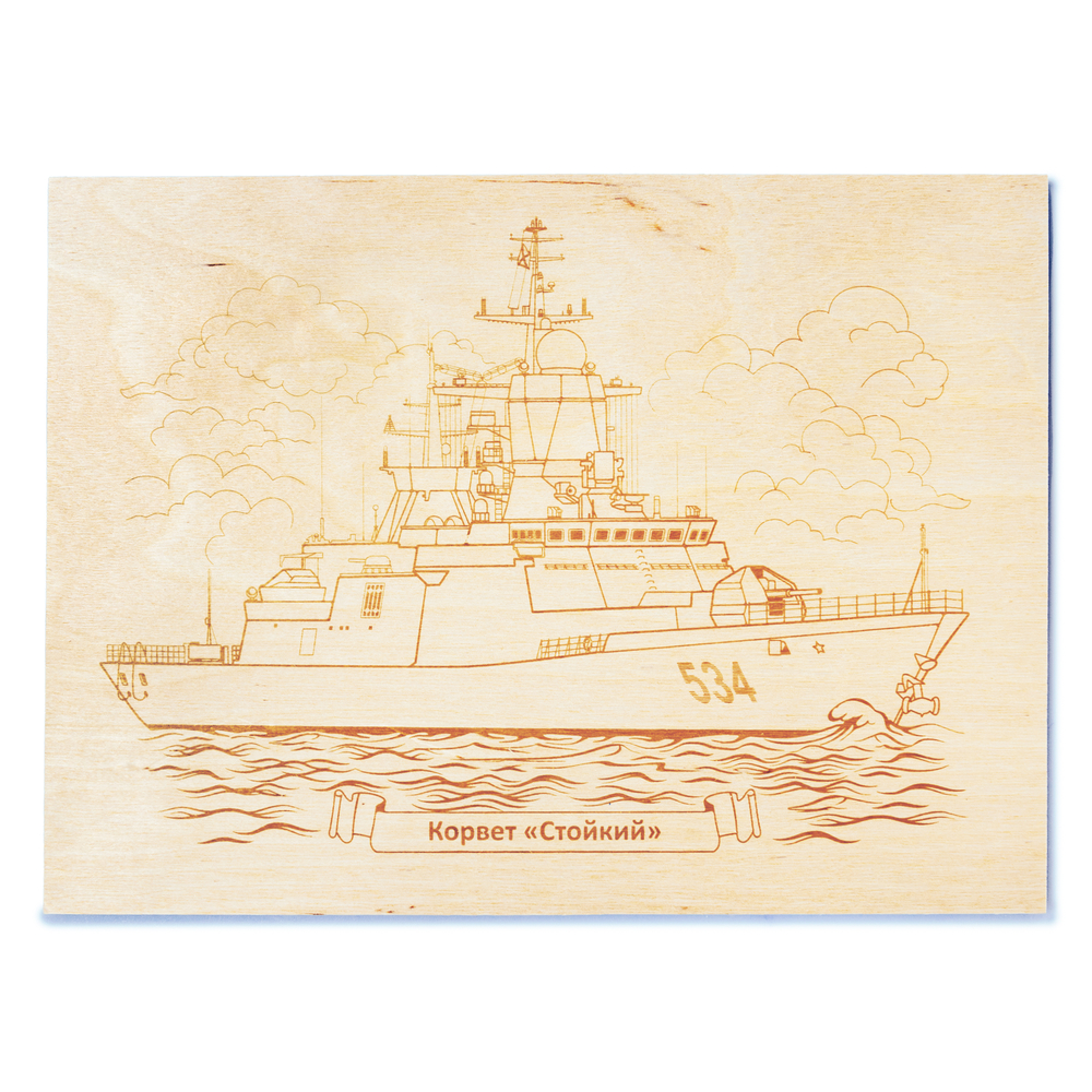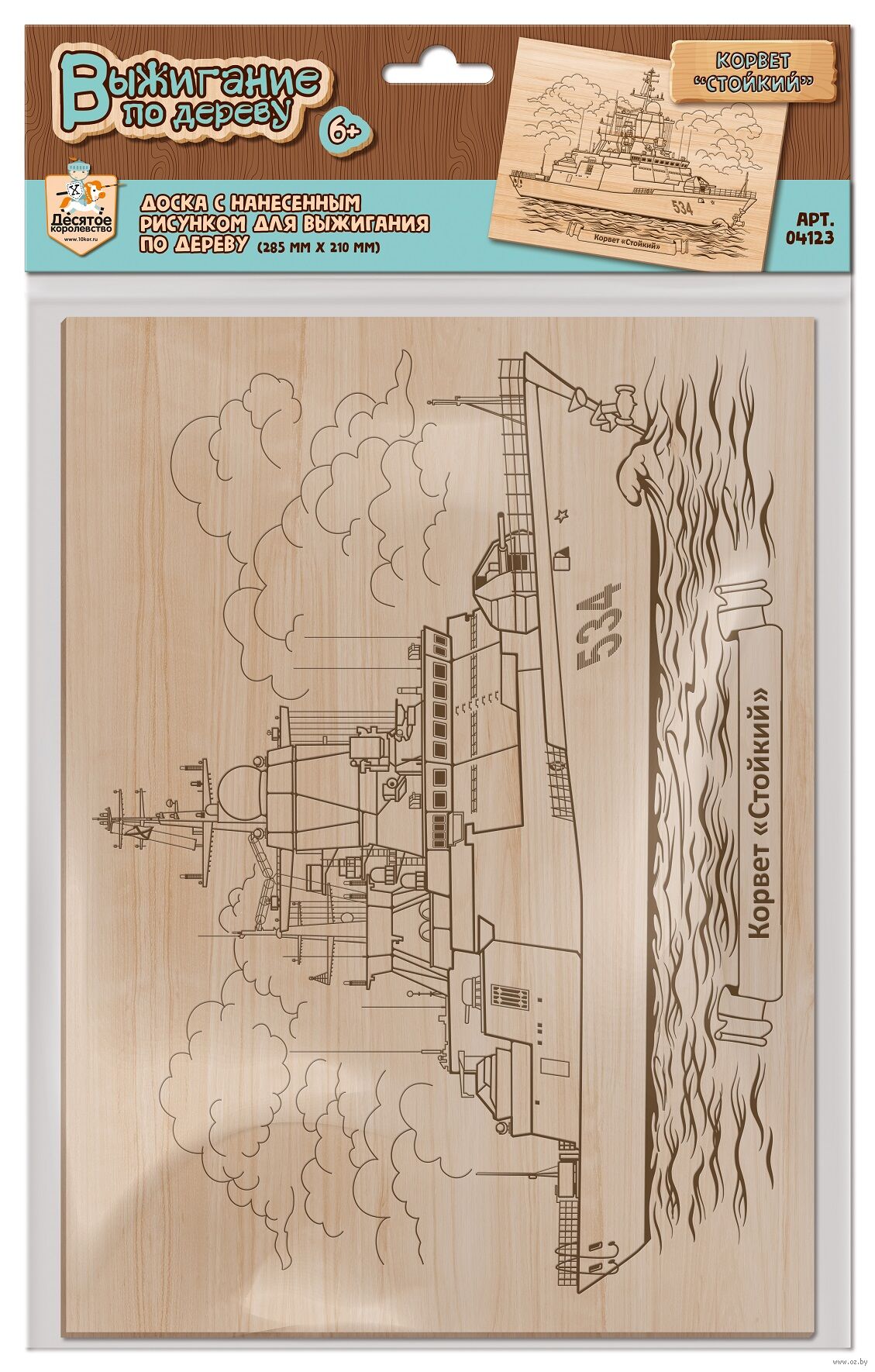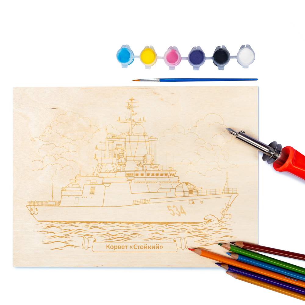 Создайте красивую иллюстрацию военного корабля на дереве в технике пирография с доской для выжигания "Корвет: Стойкий".