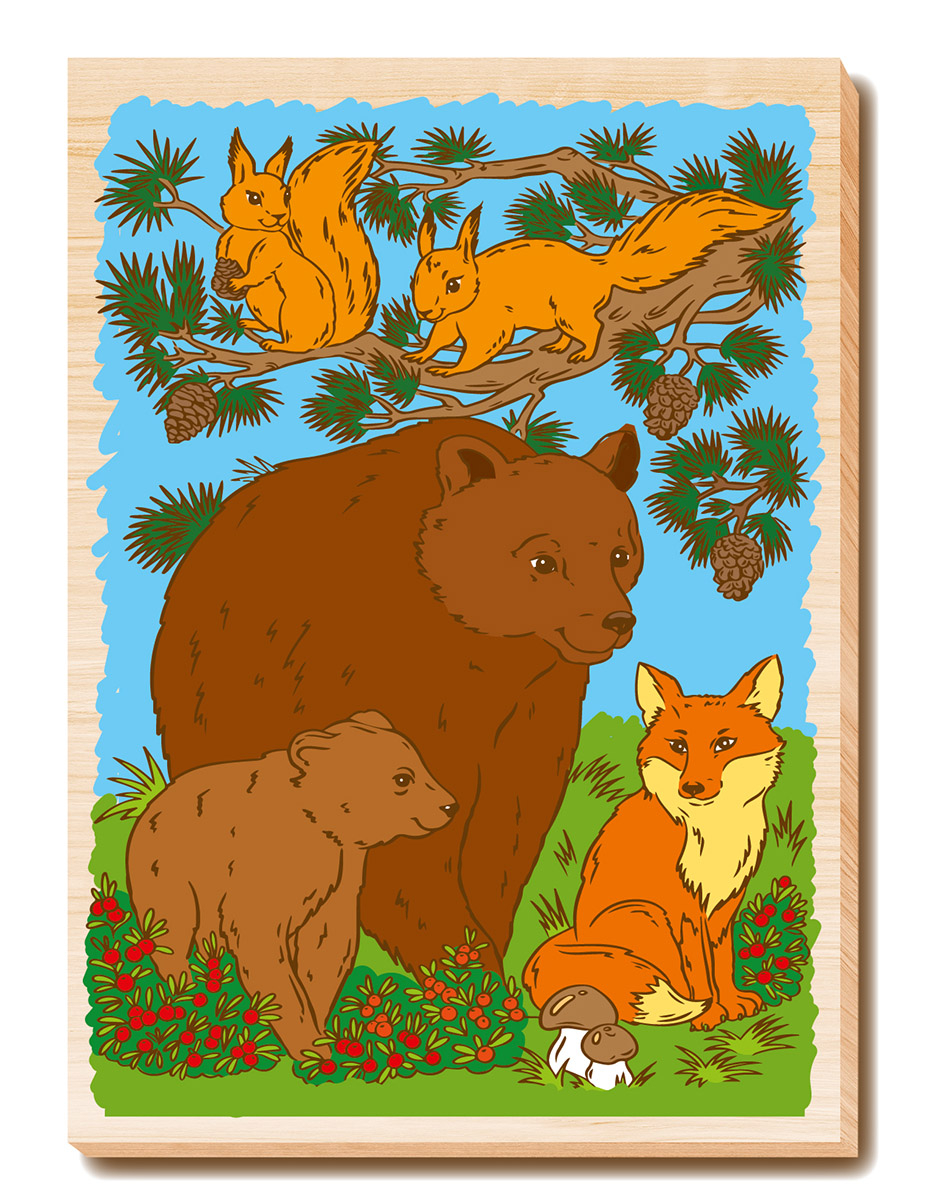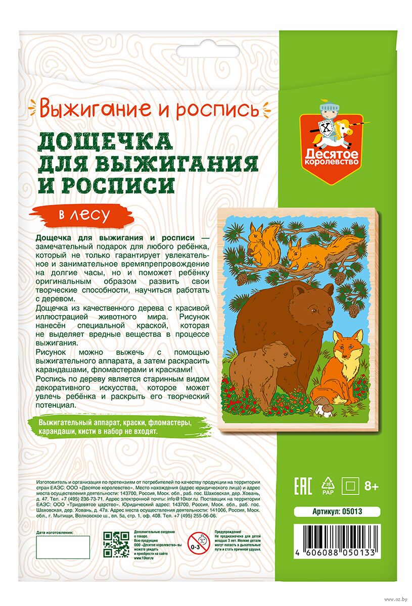 Дощечка для выжигания и росписи "В лесу" – это замечательный подарок для любого ребенка, который поможет интересно провести время и реализовать творческие способности. Рисунок нанесен специальной краской, которая не выделяет вредные вещества в процессе выжигания.