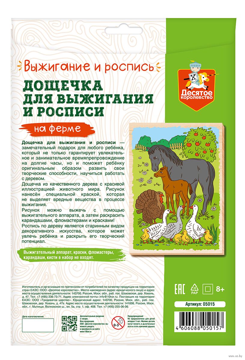 Дощечка для выжигания и росписи "На ферме" – это замечательный подарок для любого ребенка, который поможет интересно провести время и реализовать творческие способности. Рисунок нанесен специальной краской, которая не выделяет вредные вещества в процессе выжигания.
