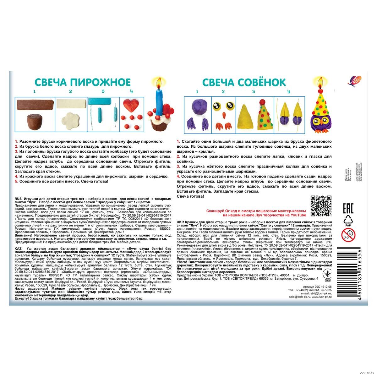 Материал для лепки свечей – пластины из натурального воска. Они не содержат вредных добавок и безопасны для детского творчества. Пластины мягкие и легко принимают желаемую форму.