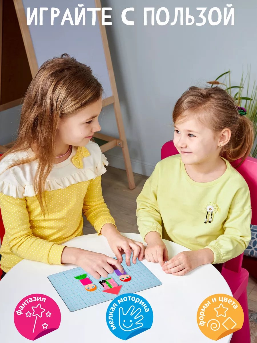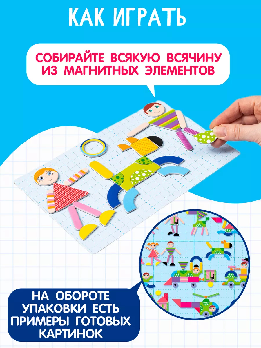 Магнитная мозаика помогает ребенку в игровой форме проявить фантазию, приучают к образному мышлению, с пользой провести время в кругу друзей или родителей.