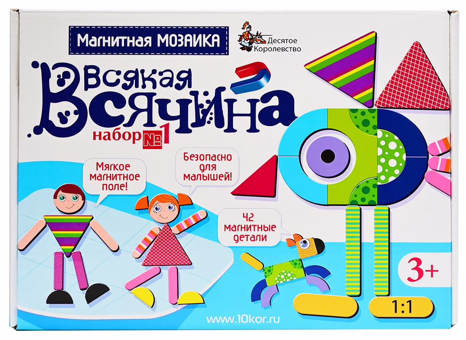 Мозаика "Всякая всячина" является полностью безопасной для малышей в возрасте от трех лет, так как в ней отсутствуют мелкие и металлические элементы, а собранные фигурки не рассыпаются даже при переноске, благодаря магнитной мягкой основе.