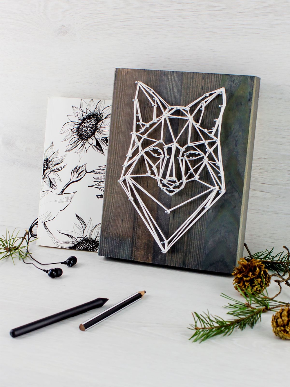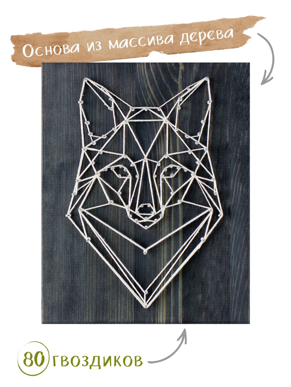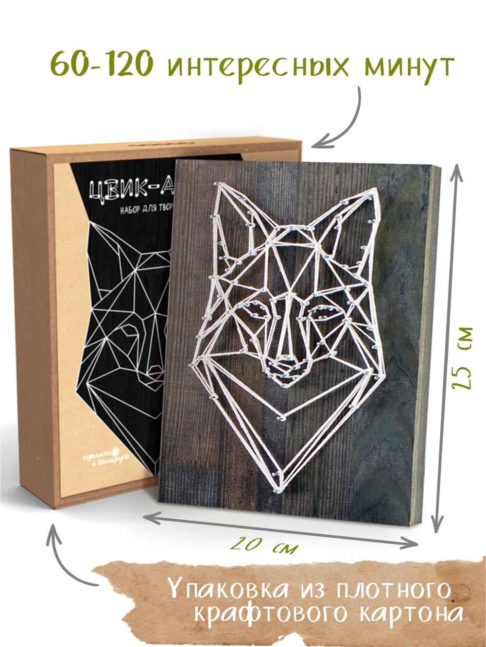Набор для стринг арта "Цвик-Арт. Волк" рассчитан как подростков от 12 лет, так и для взрослых. Основание выполнено из прочного древесного массива и окрашено черной экологичной краской.