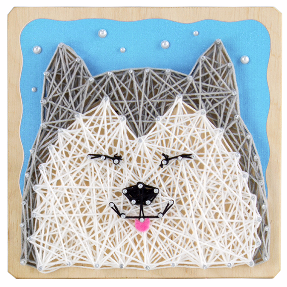 Картины серии "Цвик-арт" – это возможность попробовать свои творческие силы в современной технике. По намеченным отверстиям в основу из дерева цвета зимнего неба вбиваются гвозди. Молоток понадобиться свой, а о специальном держателе для обеспечения безопасности детских пальцев позаботился производитель. Цепляя нить за каждый гвоздик, делаем контур одного цвета, затем "закрашиваем" картину ниткой в произвольном порядке и снова закрепляем контур. Те же действия производим с нитью другого цвета. Осталось сделать глазки и приклеить мягкий язычок из фетра. Создайте снежную метель из бусин, и волшебная картина готова!