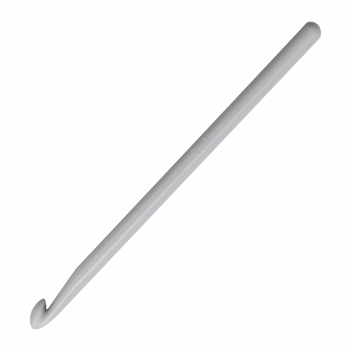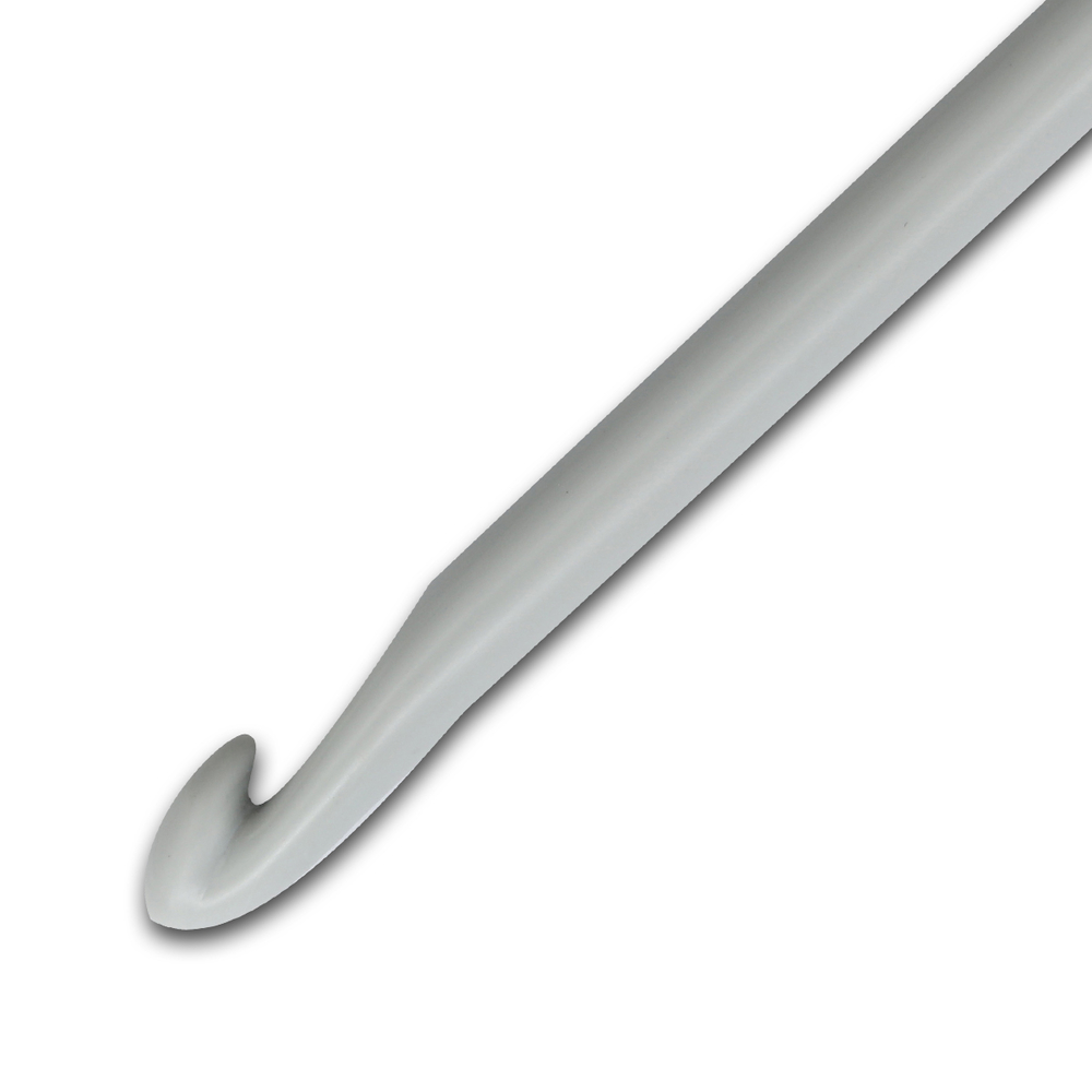 Пластиковый крючок удобно лежит в руке, не травмирует пальцы и подходит даже для детского творчества.