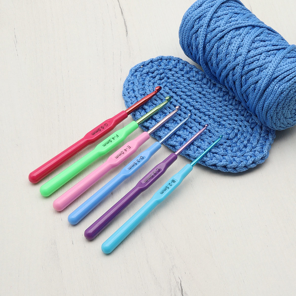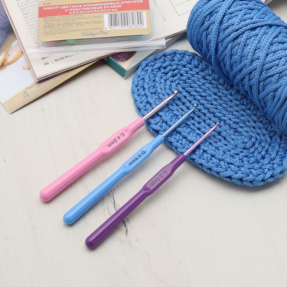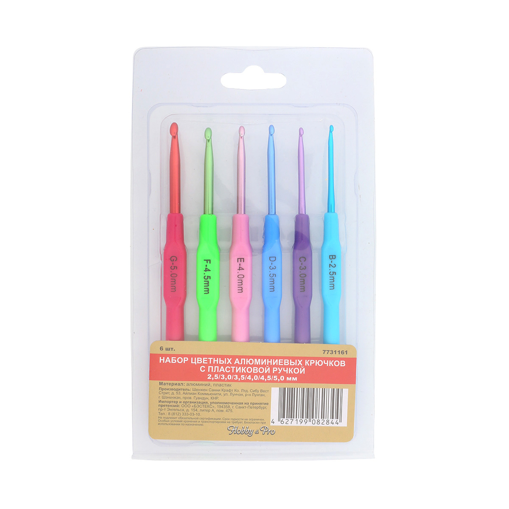 Набор цветных алюминиевых крючков от Hobby&Pro популярных размеров позволяет вязать любые вещи и аксессуары, работать с пряжей разной толщины и фактуры. Номер крючка указан на ручке, кроме того, у каждого размера свой цвет, чтобы вы могли быстро найти подходящий вариант в корзине для рукоделия.