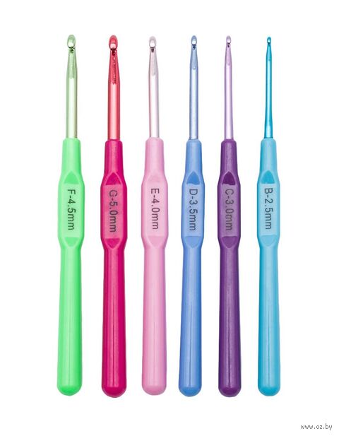 В наборе вы найдете 6 крючков. Размеры указаны на инструментах.