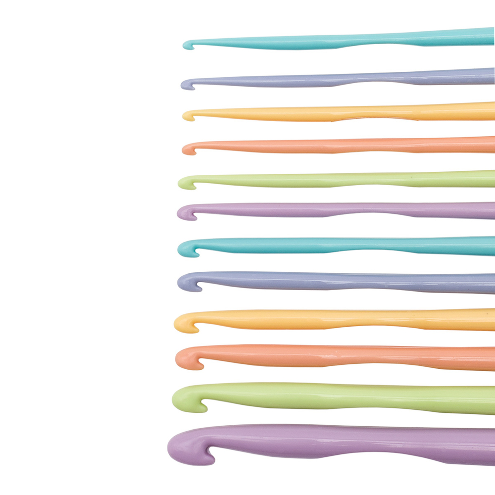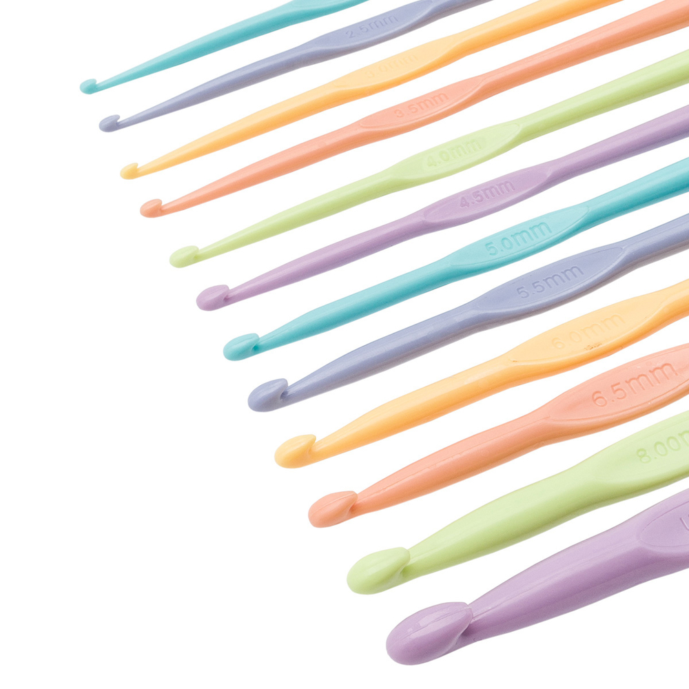 Каждый крючок имеет длину 14,8 см, это обеспечивает удобный хват и комфортное вязание. Благодаря использованию качественного пластика крючки легкие и компактные, идеально подходят для путешествий и поездок. Вы можете взять их с собой в дорогу и наслаждаться любимым хобби.